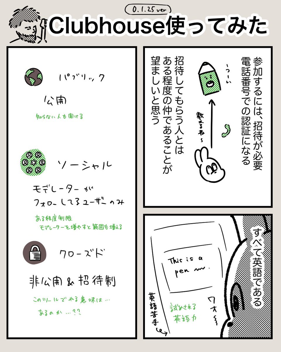 今日クラブハウスやってみての感想〜