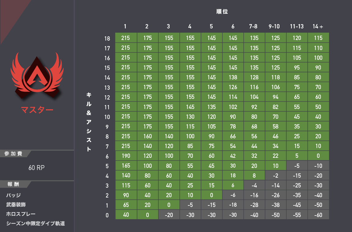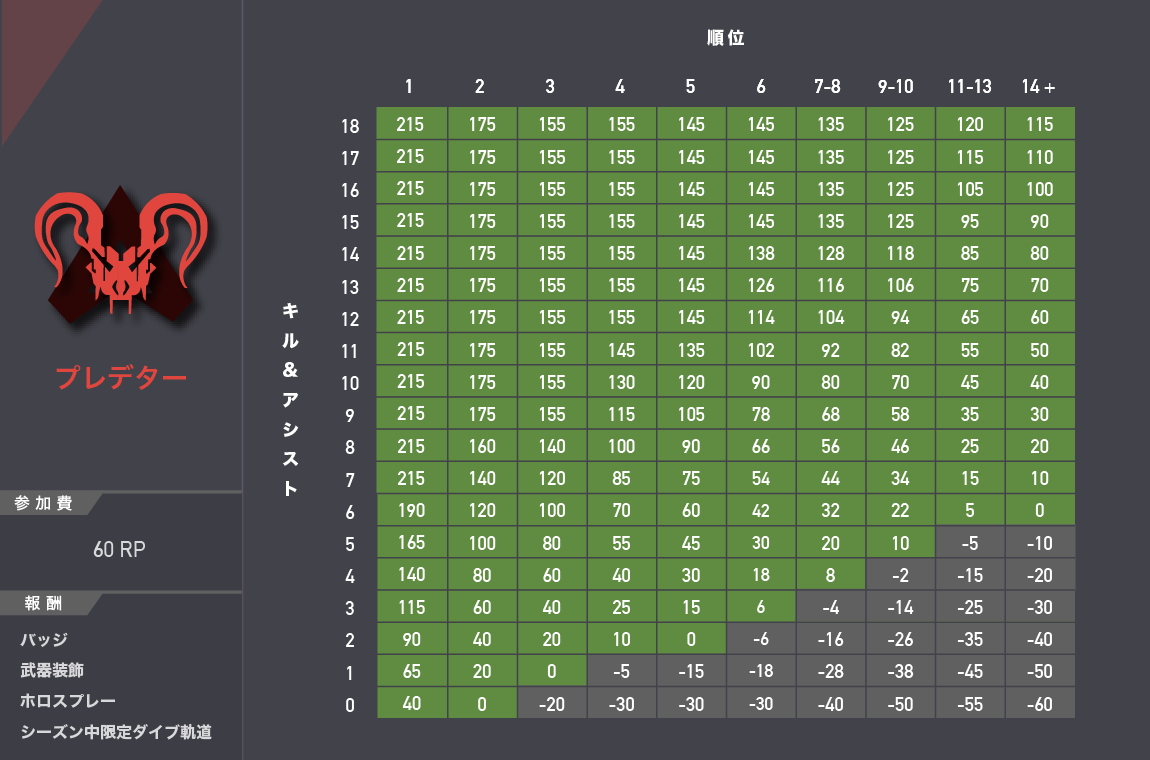 シーズン12のランクポイント早見表を作りました!