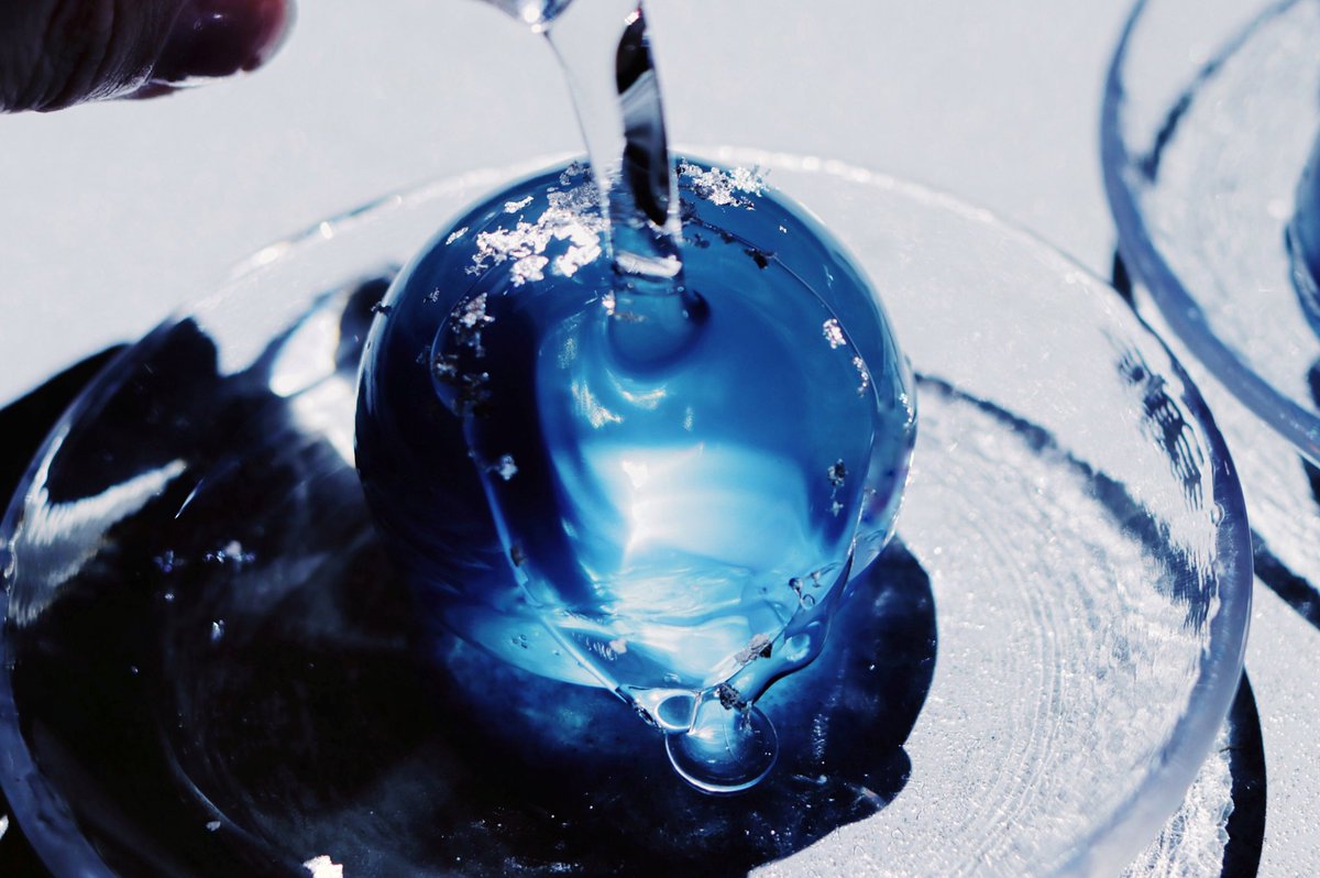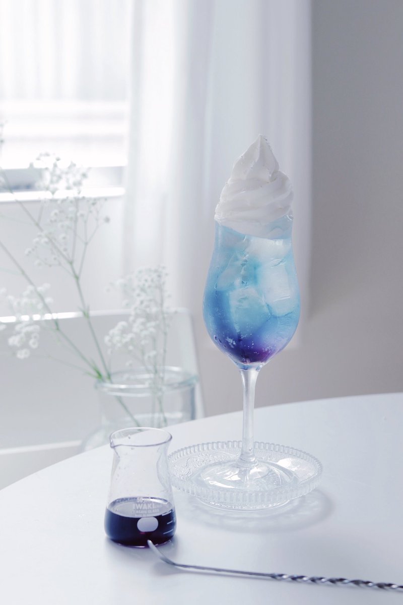 銀箔をのせた夜空色のクリームソーダ。