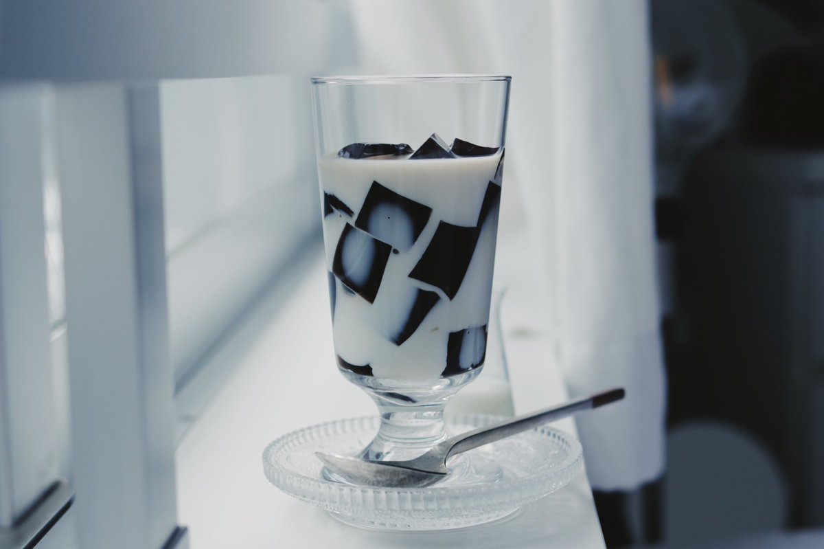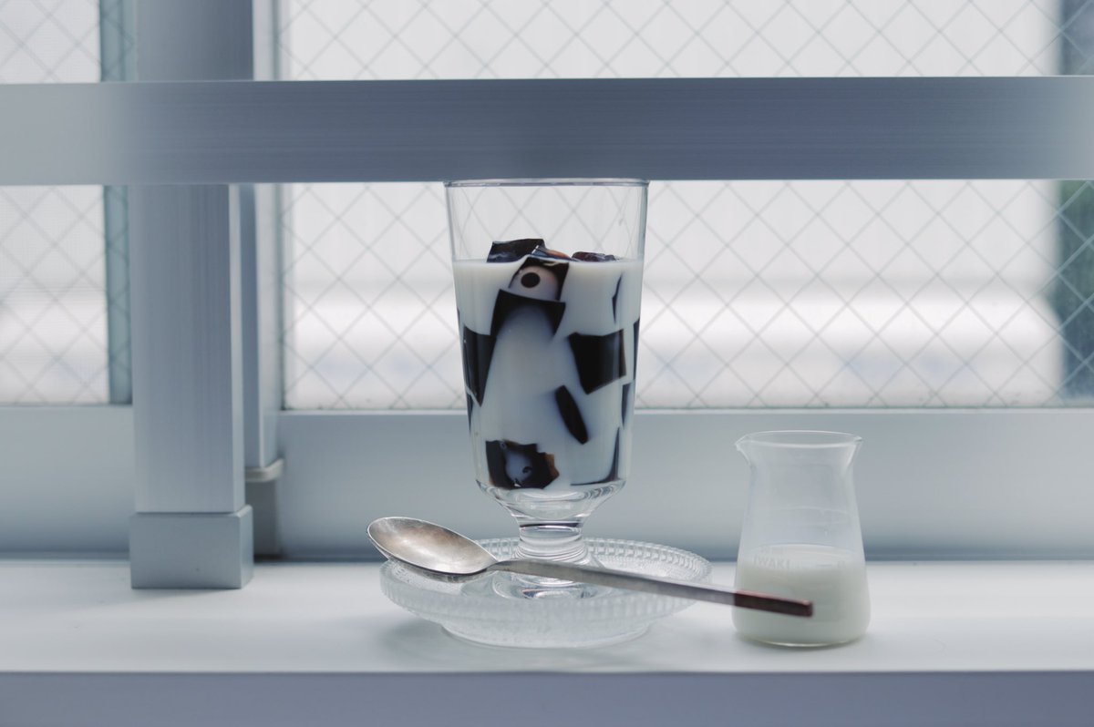 たっぷりのミルクに沈んだコーヒーゼリー。限りなく不透明に近い透明。