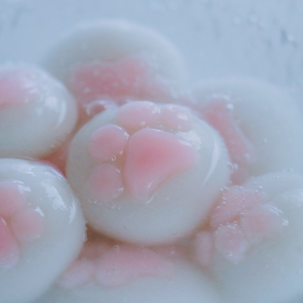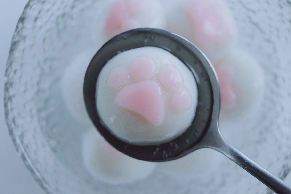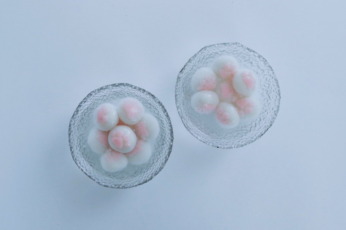 猫の日に。 サイダーに静かにしずむ肉球の白玉。