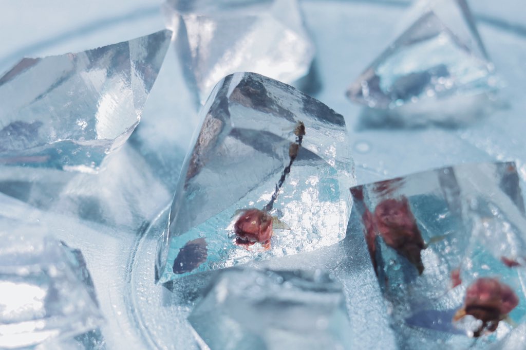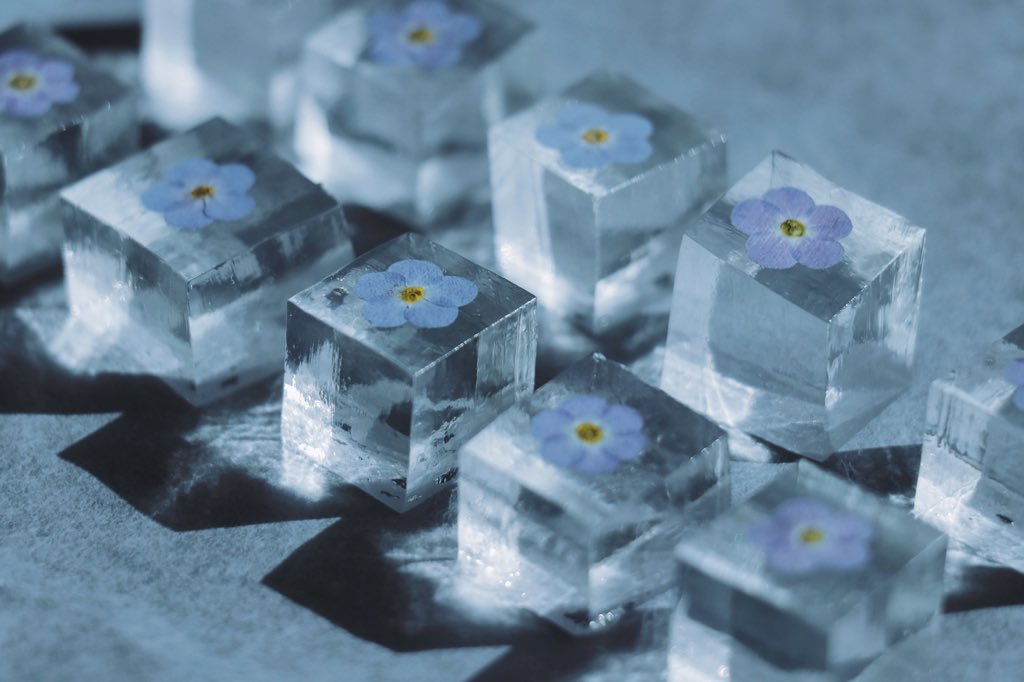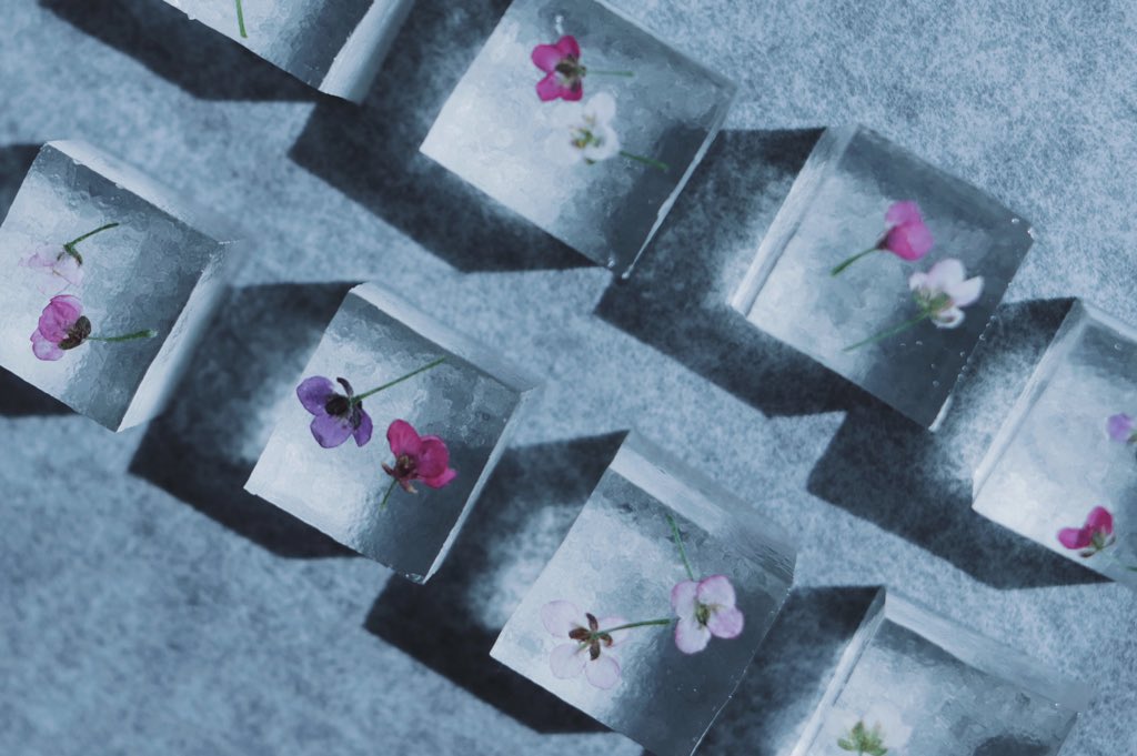 食べられる花を閉じ込めた 琥珀糖たち。