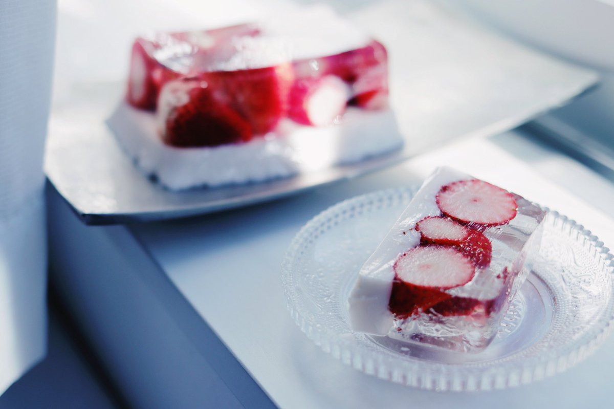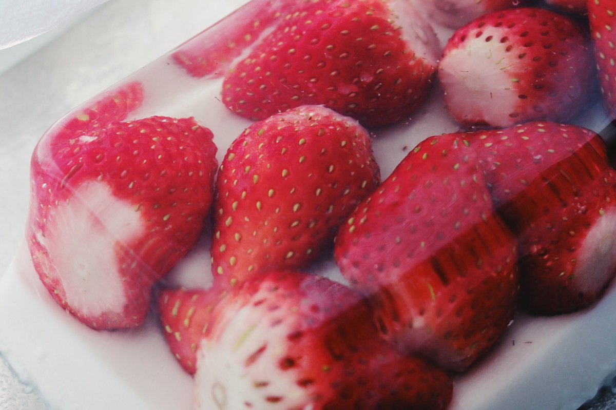 3. 固まったらいちごを上に敷き詰める。