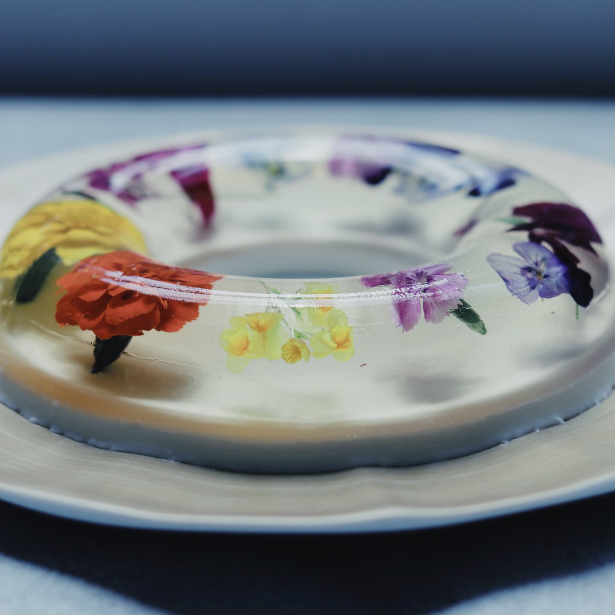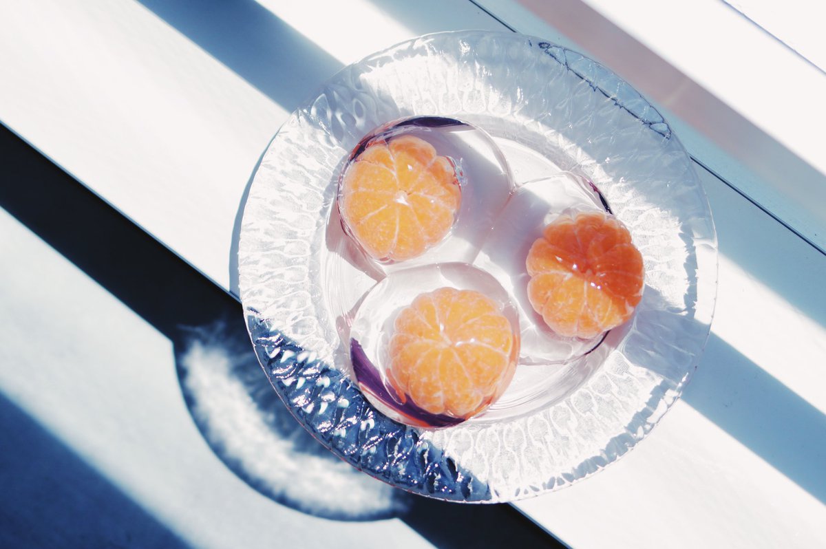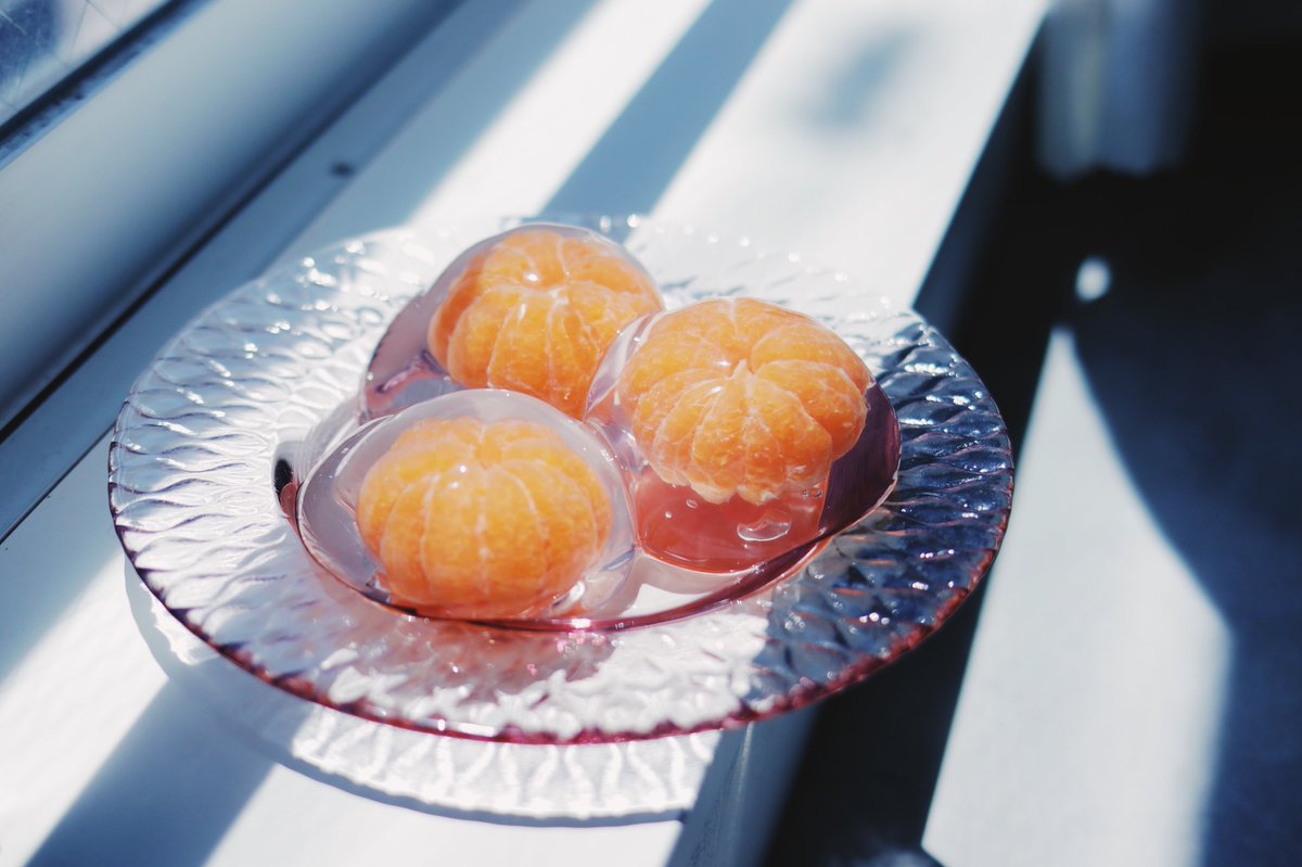 3.型にみかんを入れて液体を流し込んで固まるまで冷蔵庫で冷やす。