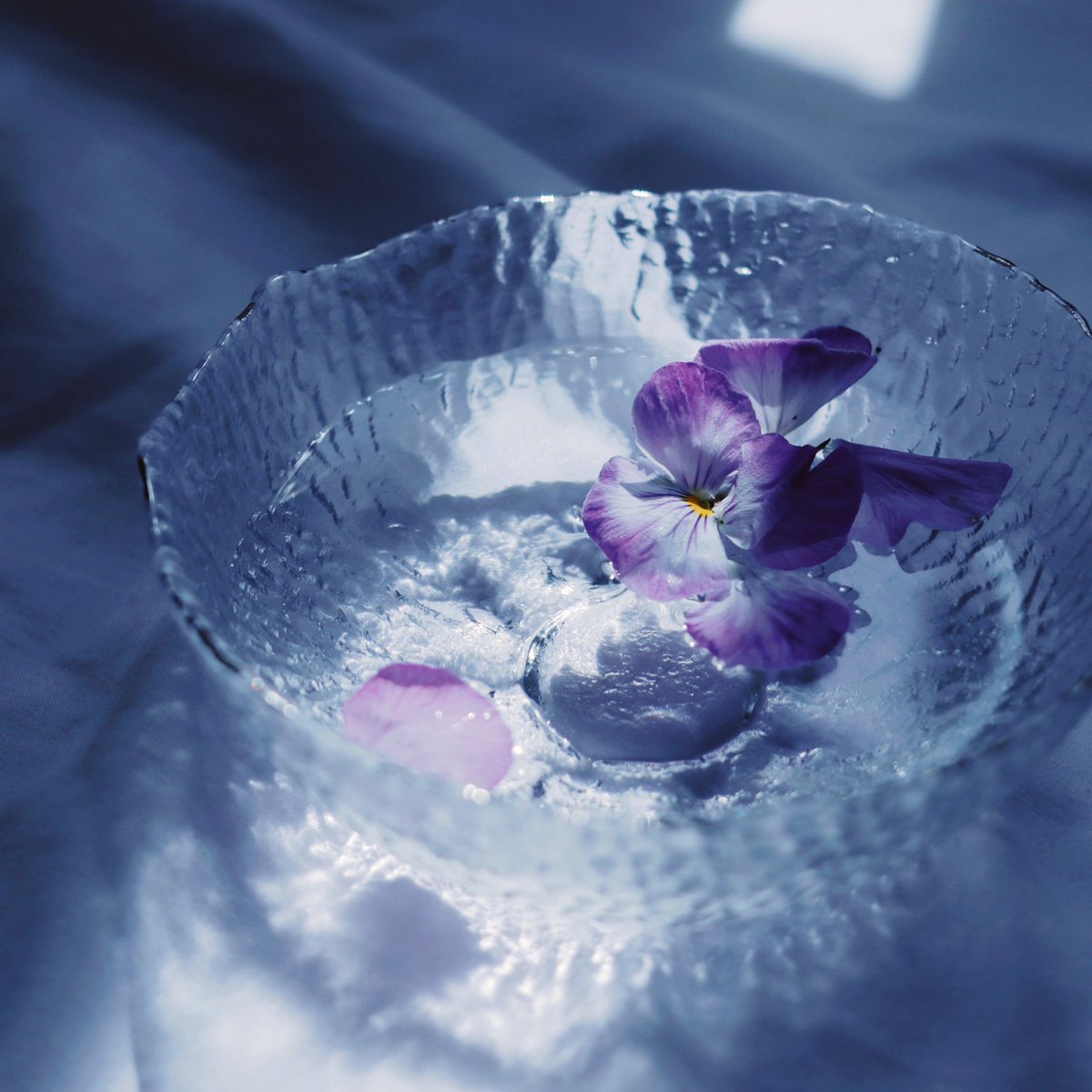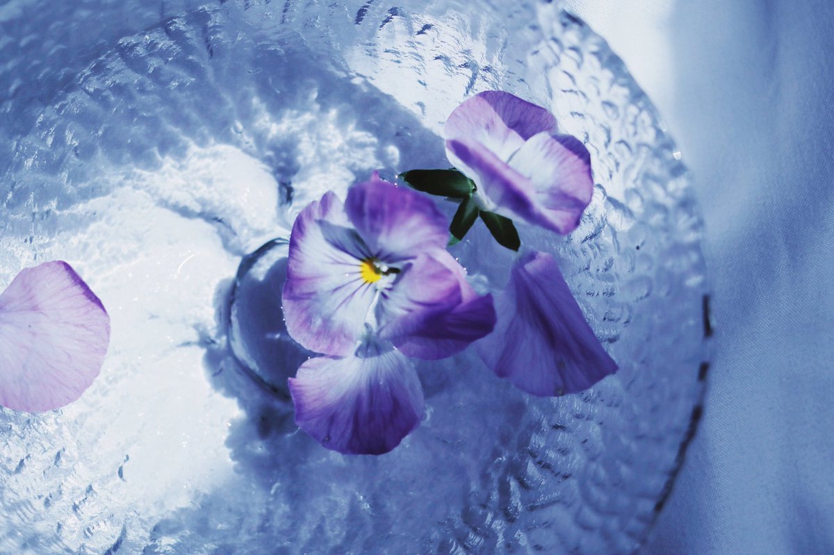 花を水に浮かべて晴れを待つ。