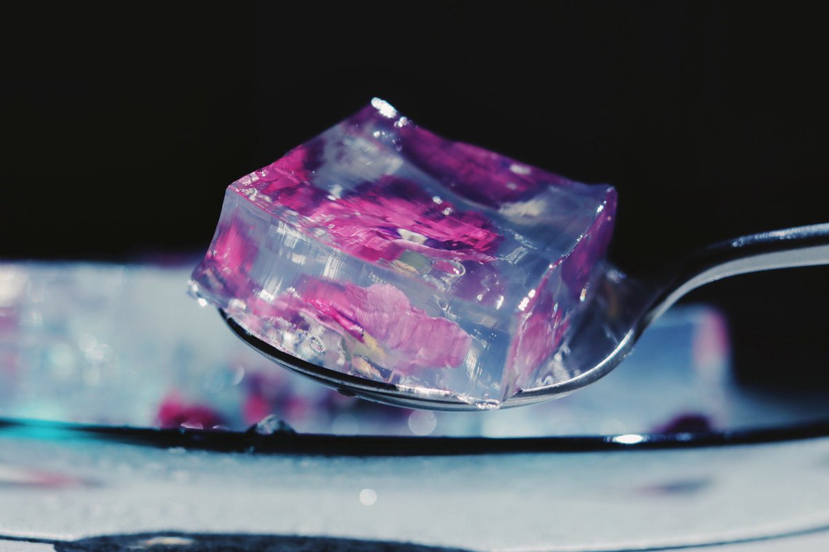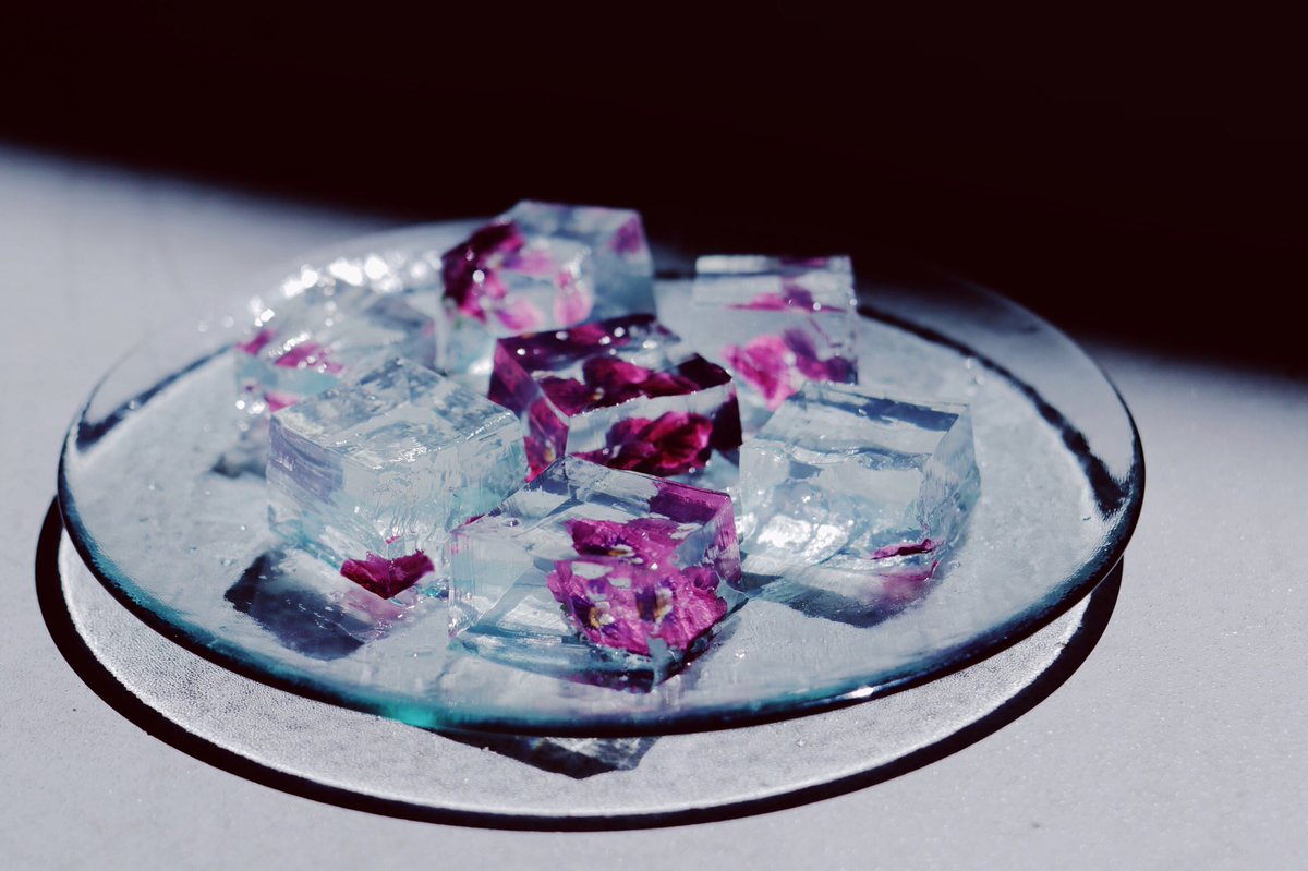花を閉じ込めたキューブゼリー。