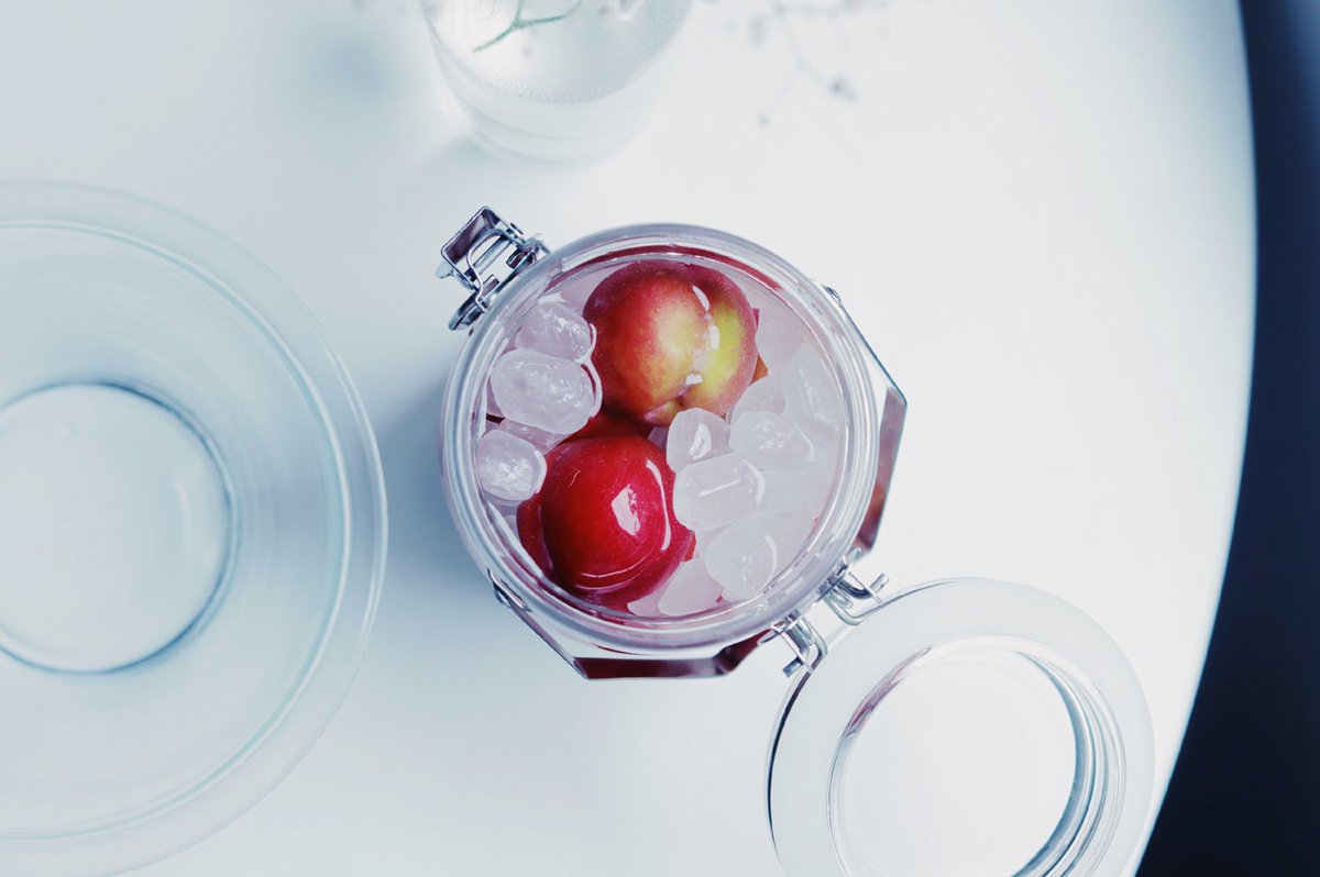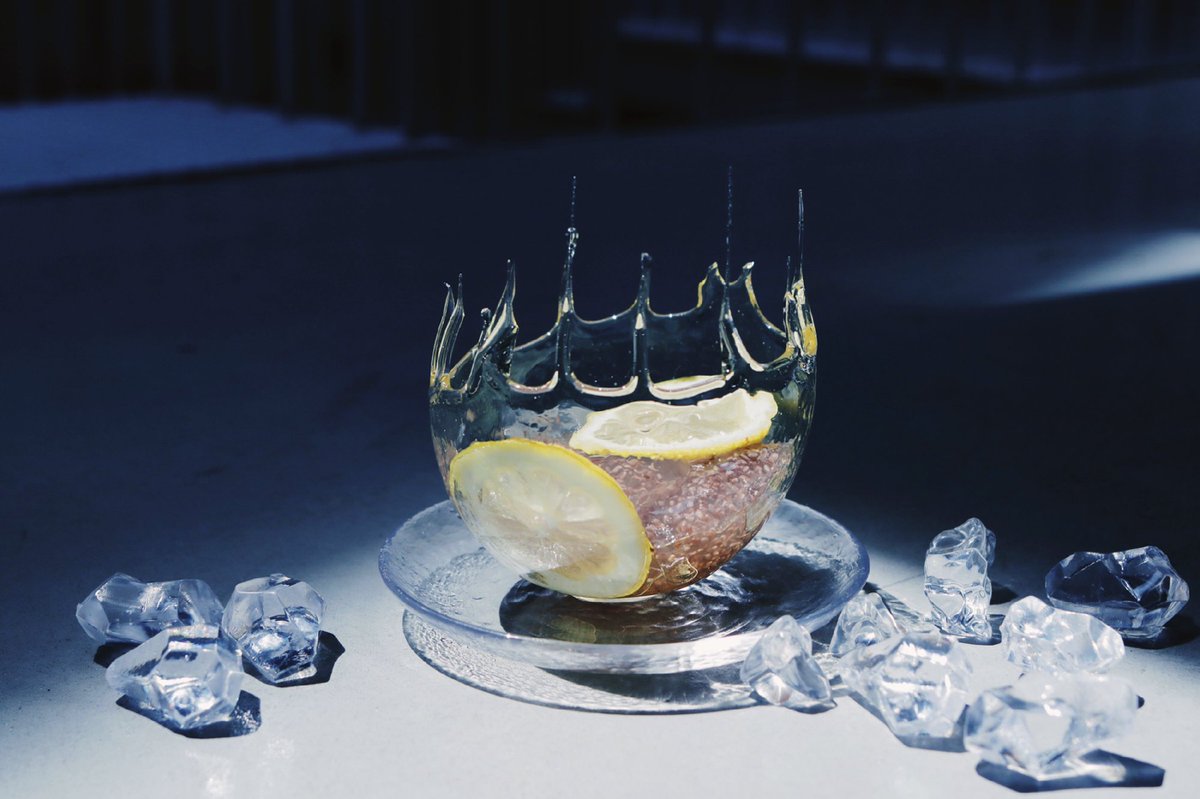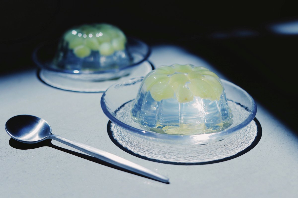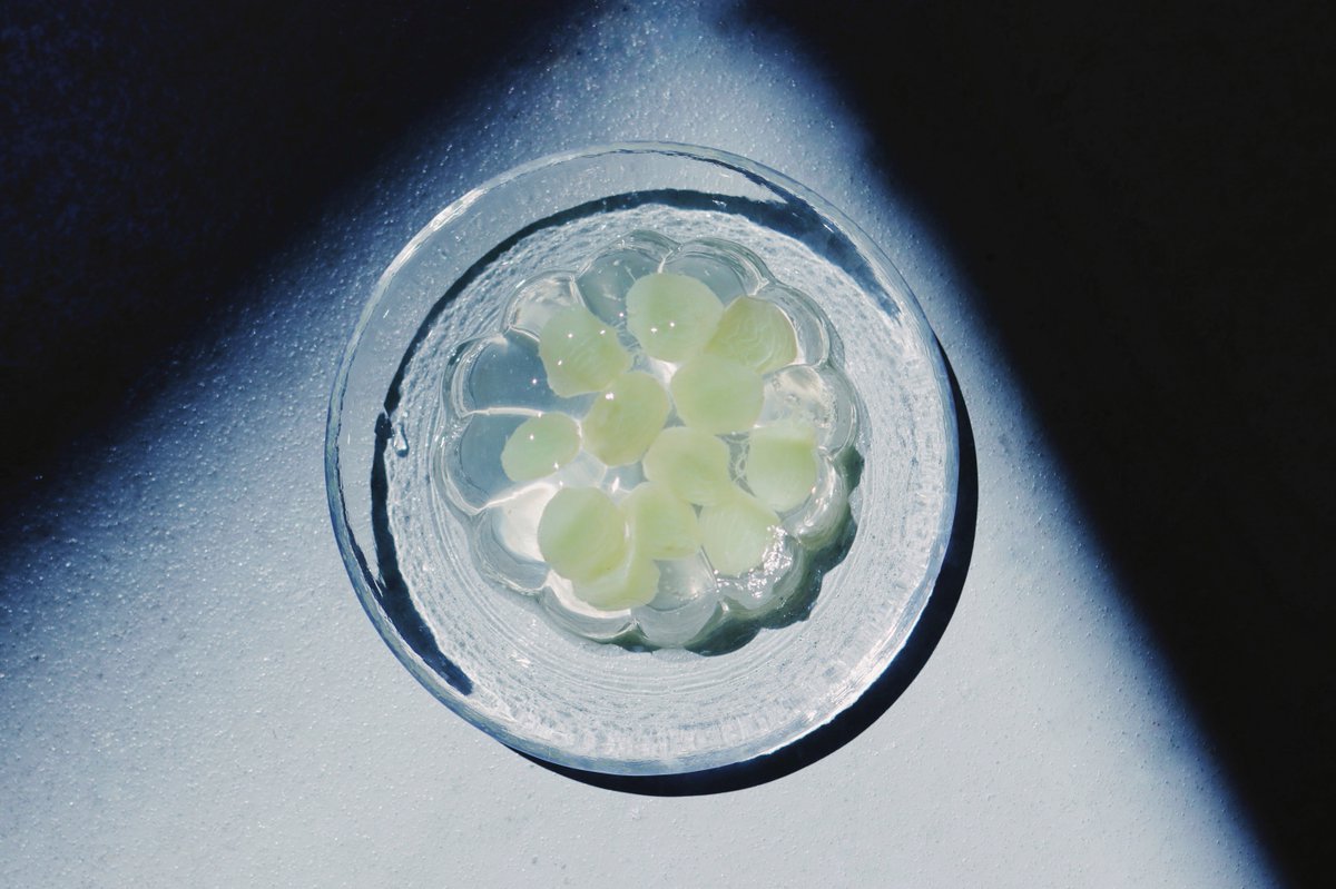 スライスレモン…2枚 チアシード蒟蒻ゼリー(レモン味&マスカット味)…適量 [飴]グラニュー糖…150g 水30ml 1. 小鍋に飴の材料を入れて加熱し煮詰めて、消毒した水風船の上に かけて固める。固まったら水をそっと抜きながら取り外す。 2. 飴の器にレモンとチアシード蒟蒻ゼリーを盛り付ける。