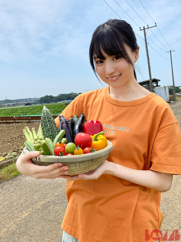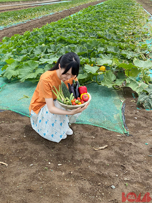 かっきー巻頭グラビアに籠いっぱいの野菜を用意。トマト、ゴーヤ、パプリカ…などたくさん揃えましたが、ロケ先で借りた畑はカボチャ畑でした。痛恨のミス!