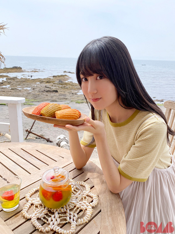 かっきー初のボム巻頭ソログラビアを記念して、手作りのフルーツティーを用意。メインはもちろん栃木のいちご!海を眺めながらも地元リスペクトのかっきーでした。