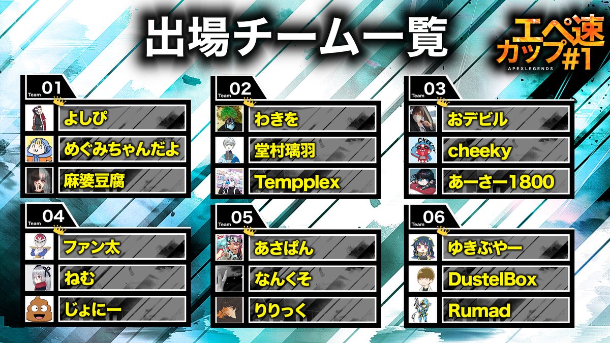 【告知】本日20時00分より、APEXのカスタムマッチ機能を使ったイベント『エペ速カップ#1』の生配信を行います🏆