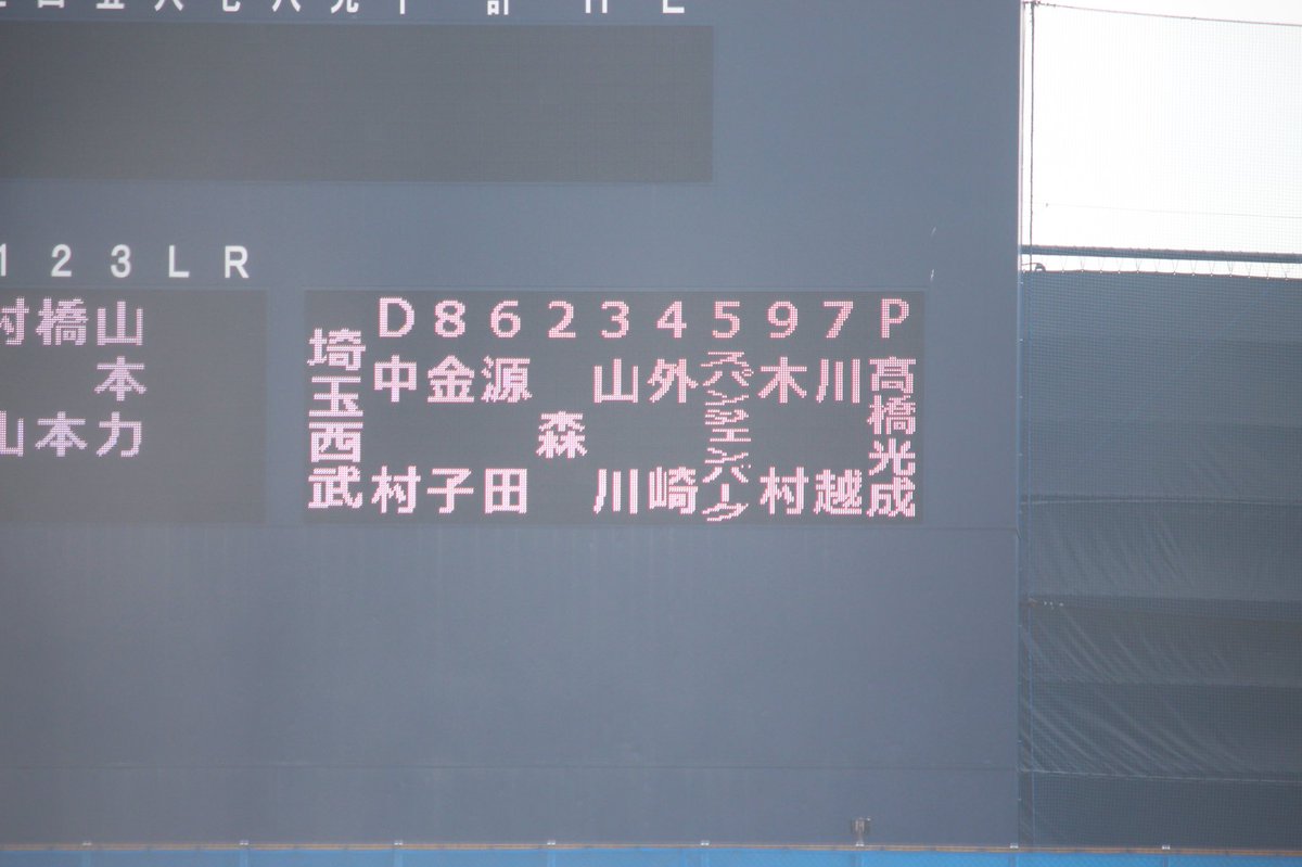 ナゴヤ球場のスコアボード、スパンジェンバーグさんの名前がしっかりと入りました。