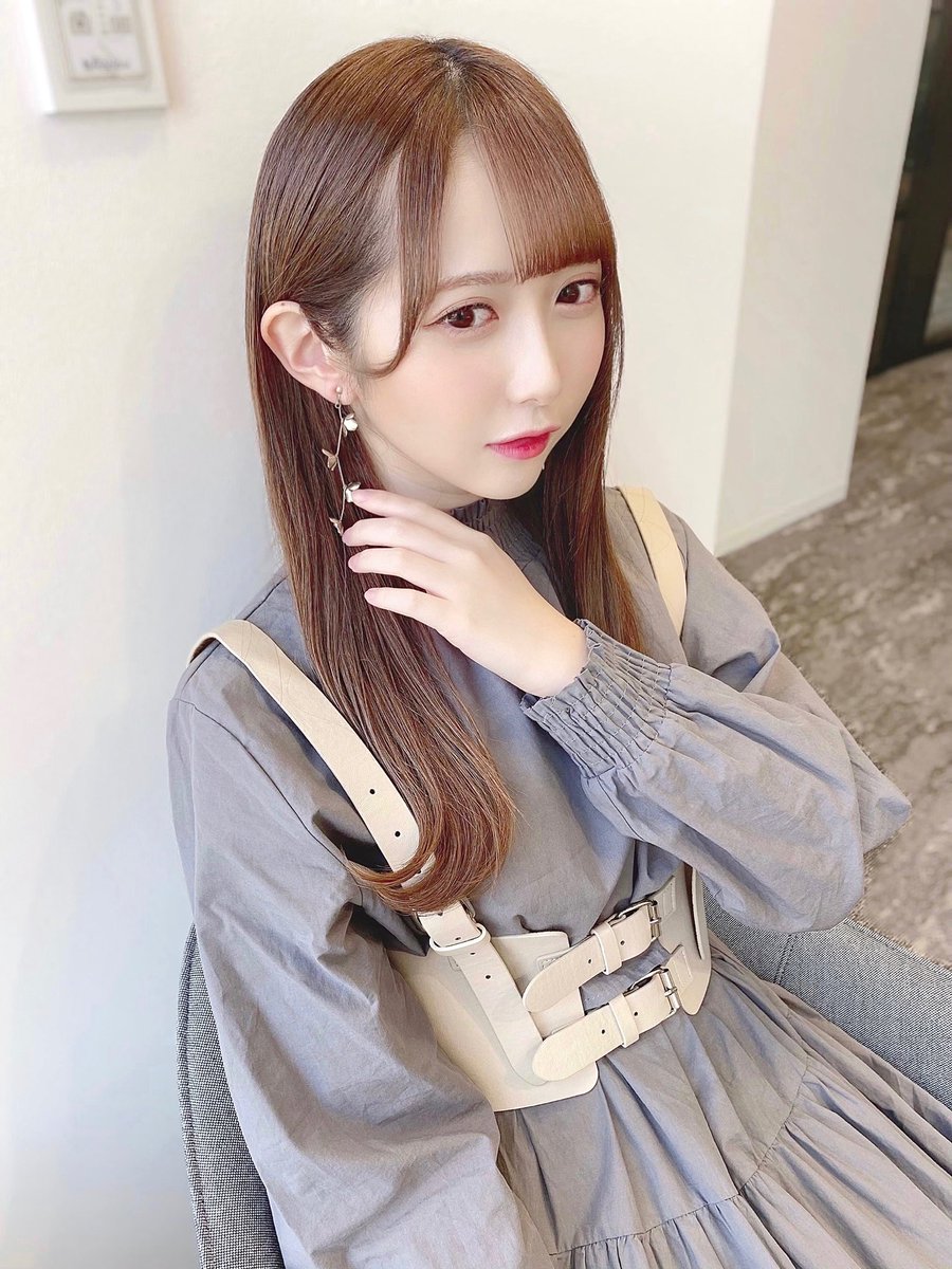 外ハネしてお花のイヤリングをつけたよ〜〜