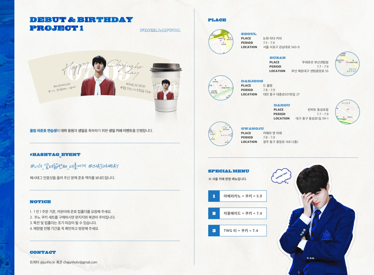 울림 차준호 연습생의 데뷔 응원과 생일을 축하하기 위한 카페 이벤트를 진행합니다.