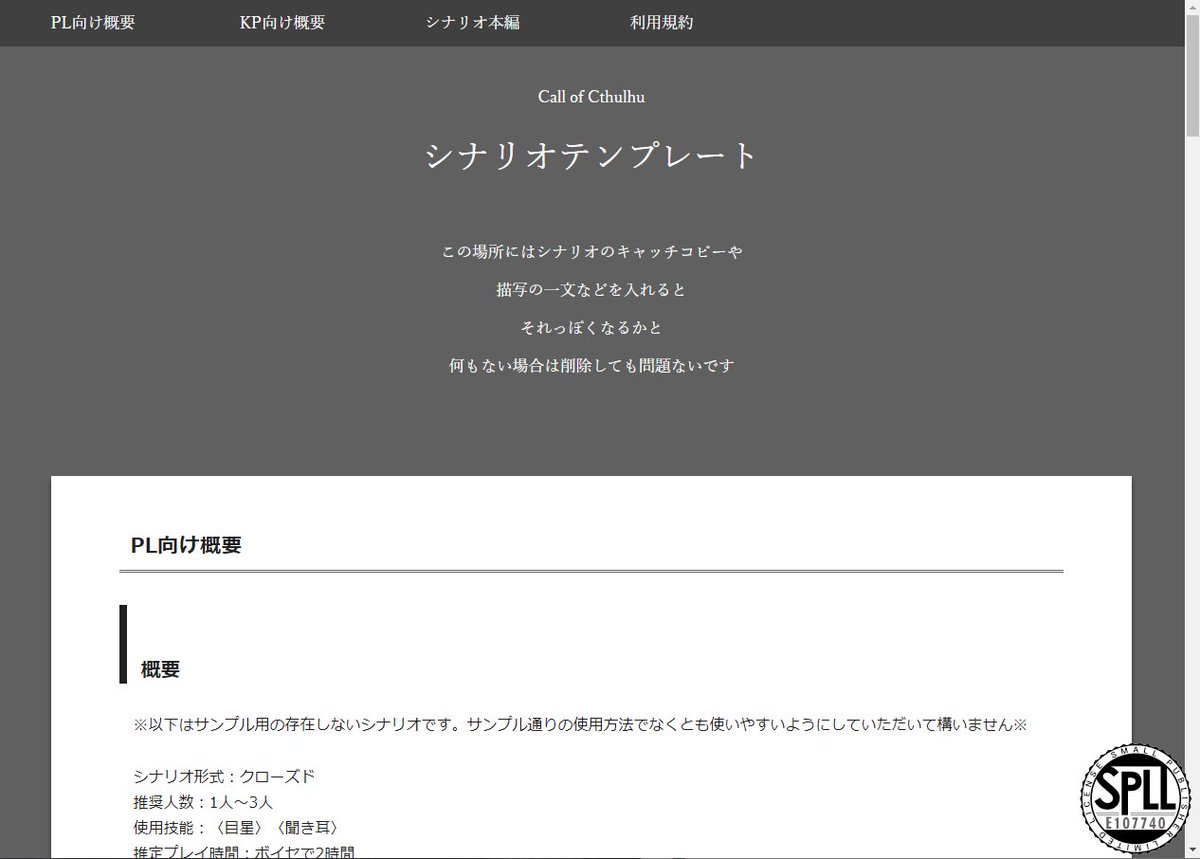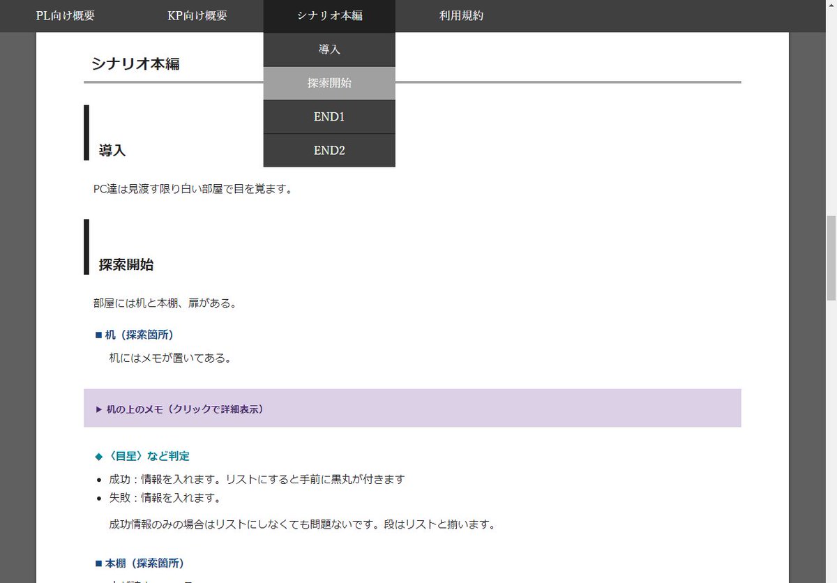 【CoC用】HTMLシナリオテンプレート