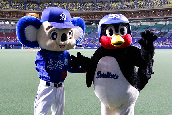 東京ヤクルトスワローズのマスコット「つば九郎」と「ドアラ」のマスコット交流日程が決定しましたので、お知らせいたします。