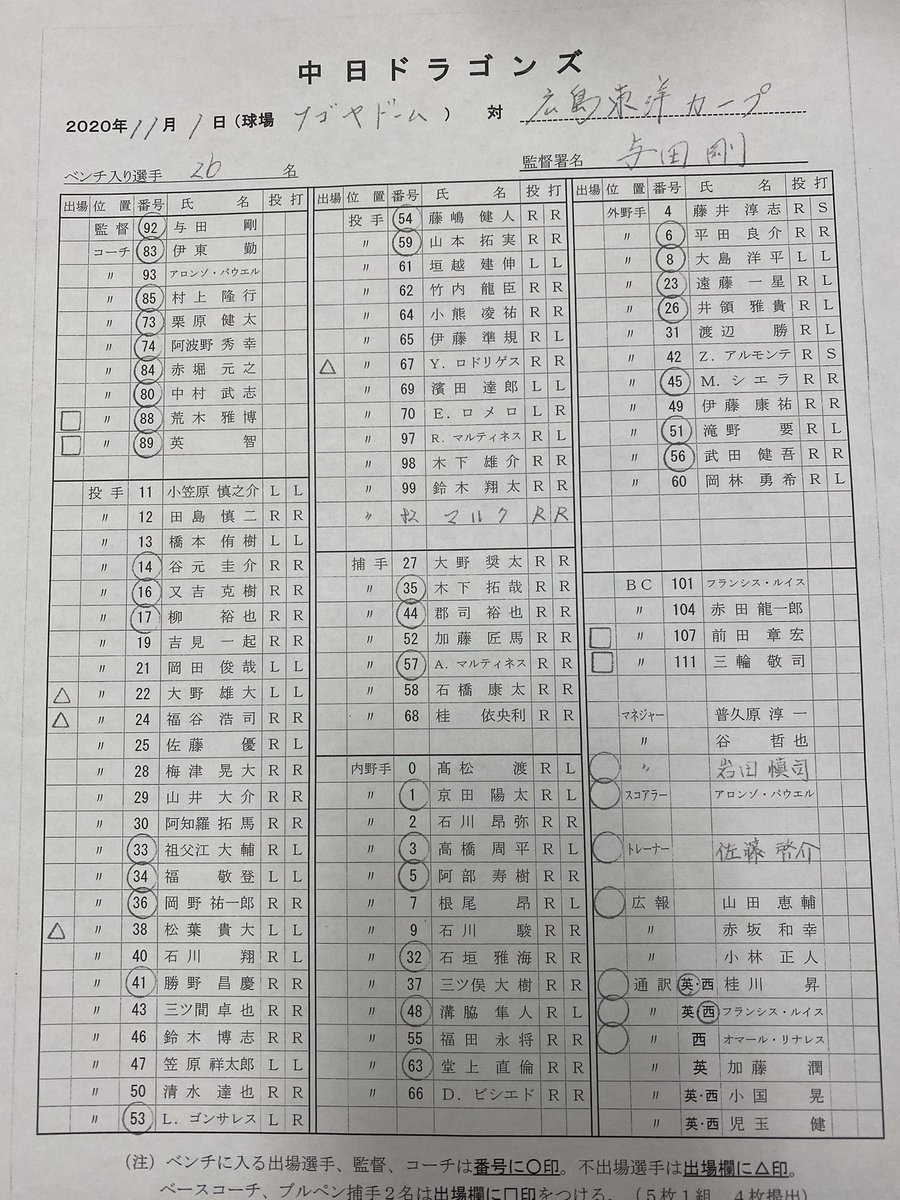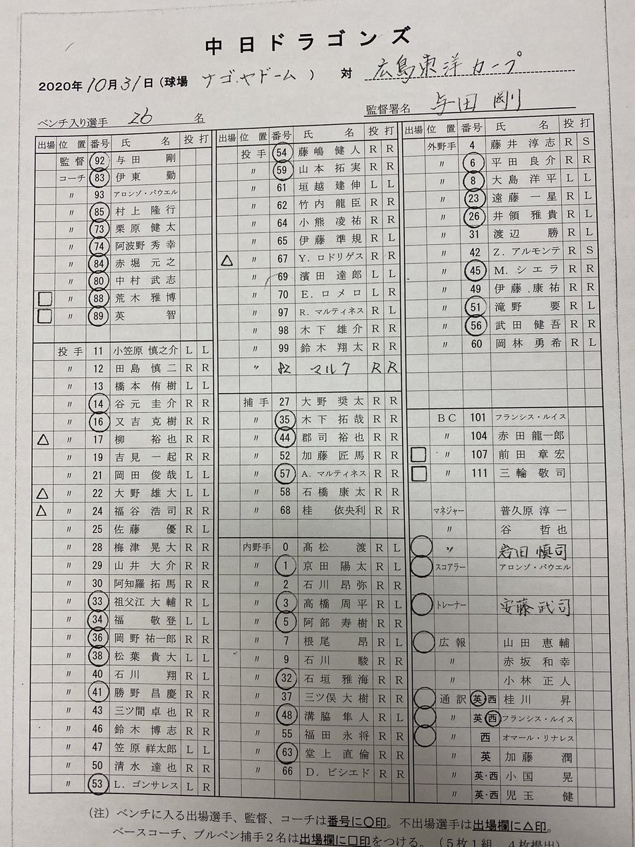 指名選手はドラゴンズ公式HP内のニュースをご覧ください
