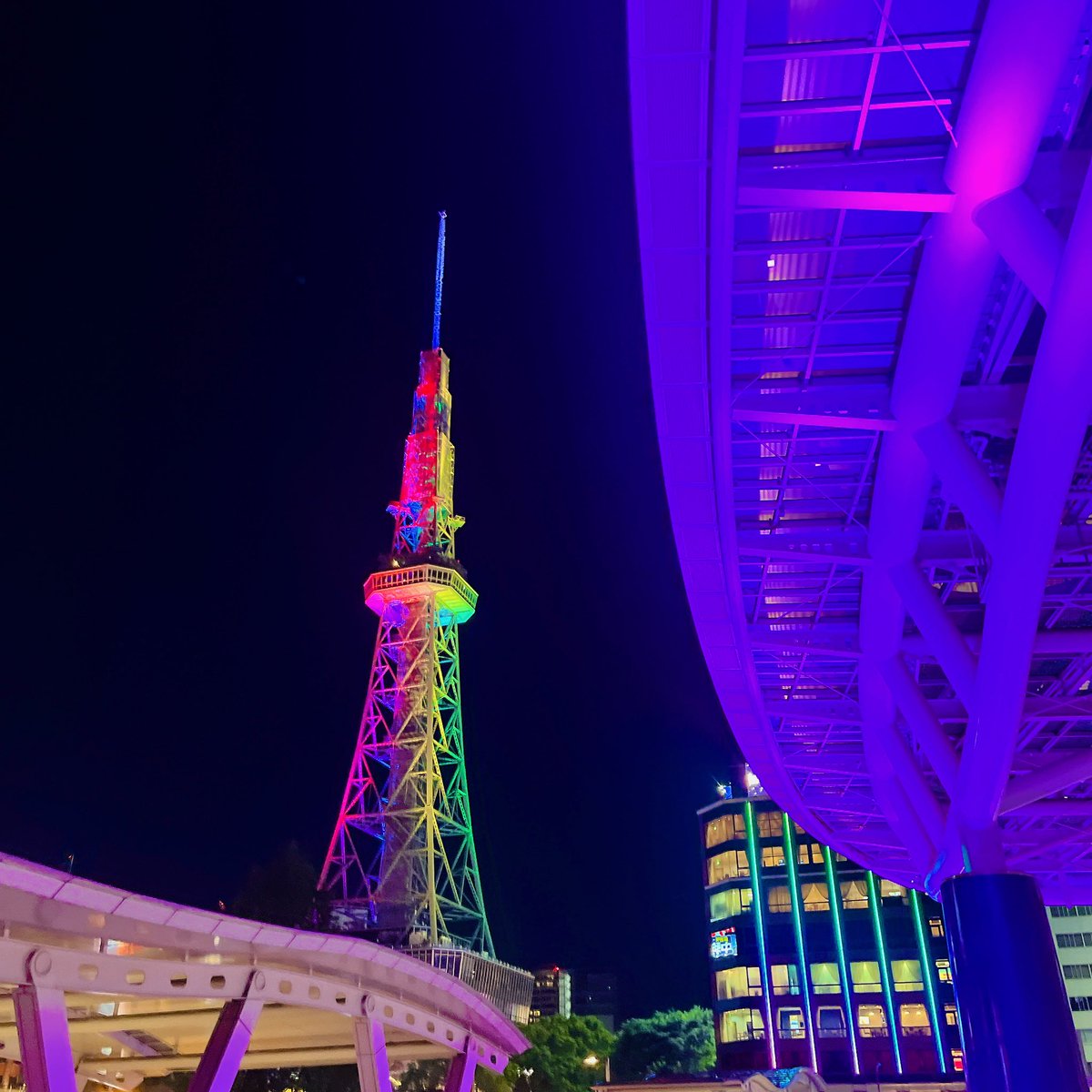 最後は名古屋のランドマーク「中部電力ミライタワー」がレインボーカラーに点灯されました!!