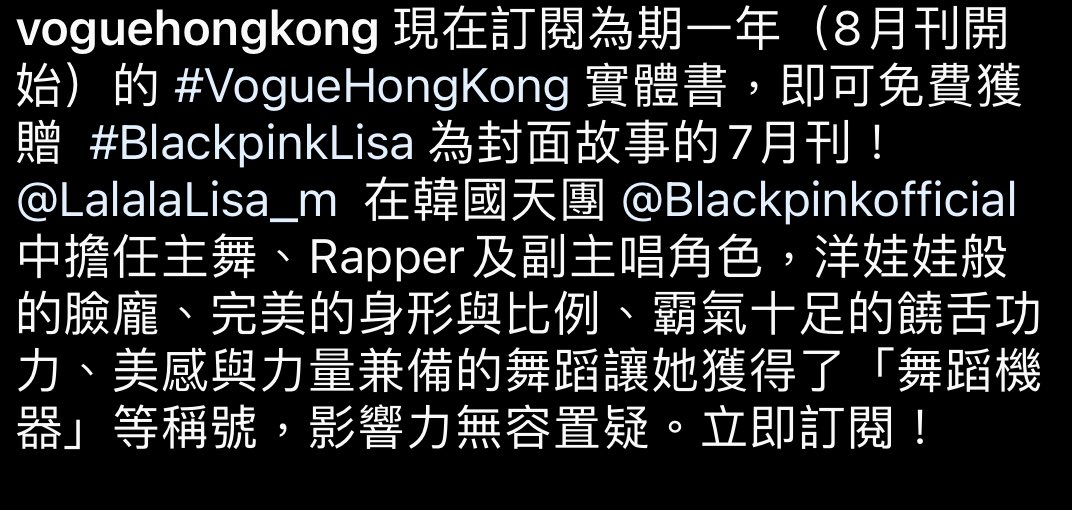 "Lisa is the main dancer, lead rapper and sub-vocalist of God-Tier K-pop group @BLACKPINK. With her doll-like face, perfect proportions & figure , charismatic rapping skills. Incorporating strength & beauty in her craft, she is the 'Dancing Machine', her impact is undeniable."