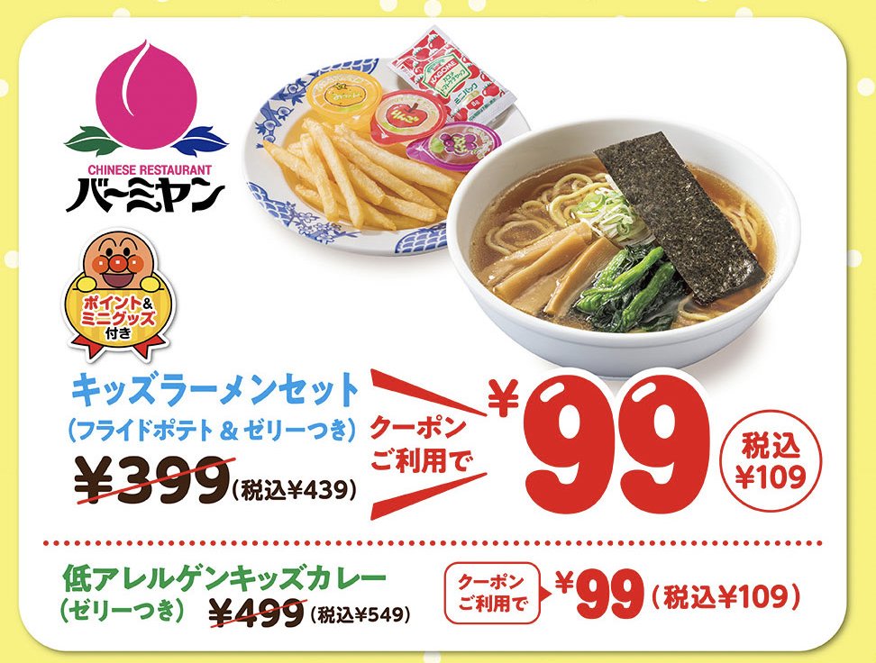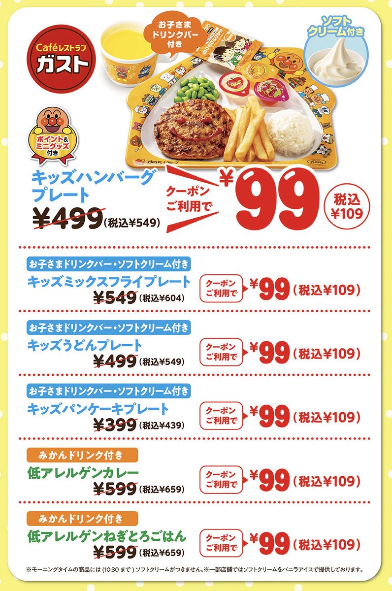 すかいらーくのキッズメニューが99円になってる😳