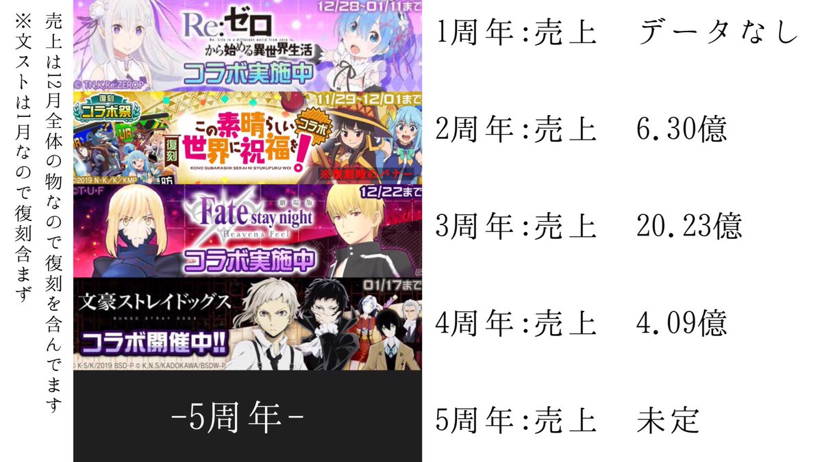 今までの周年コラボです。 ※一部データの修正をしました