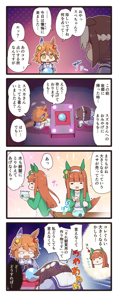 スズカさんにおみやげを渡したスペちゃんの4コマ