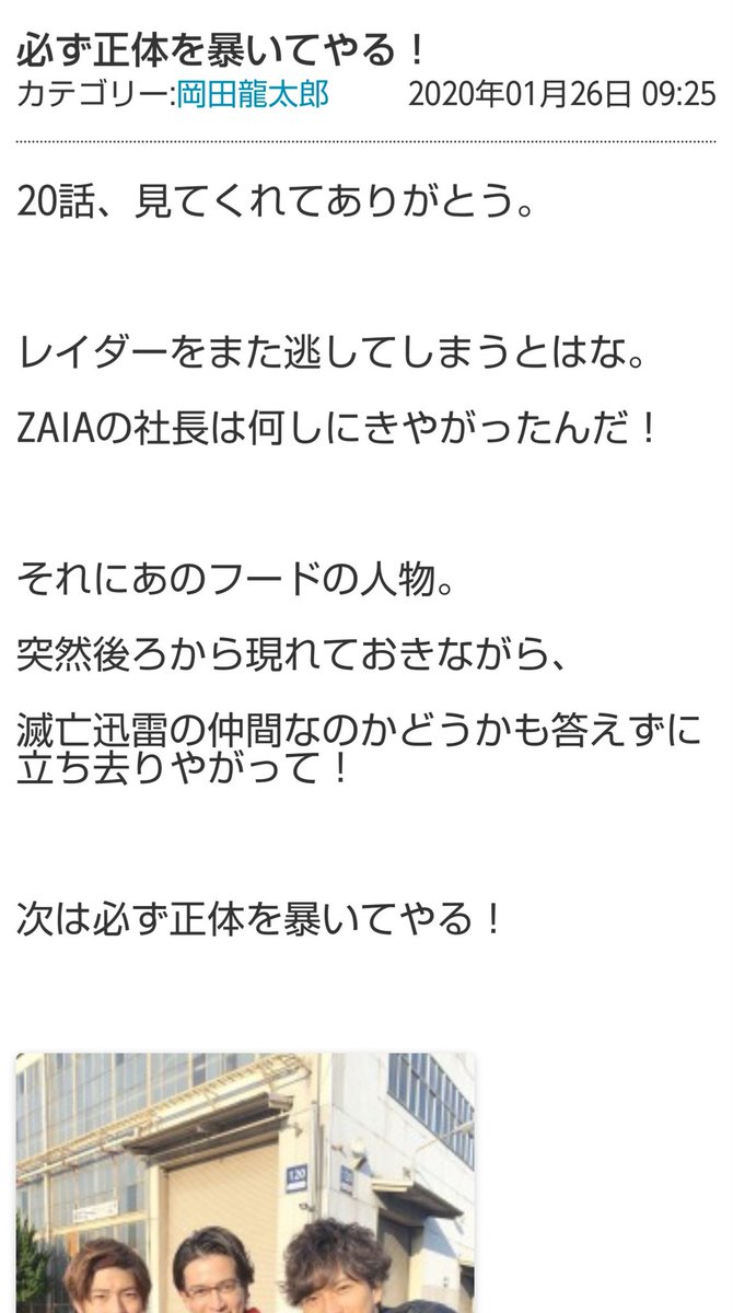 キャストブログ読んどったら不破役の岡田さんのキャストブログが不破さんで笑う...他のキャストは中の人が書いとるのに不破さんだけ不破さん(哲学)