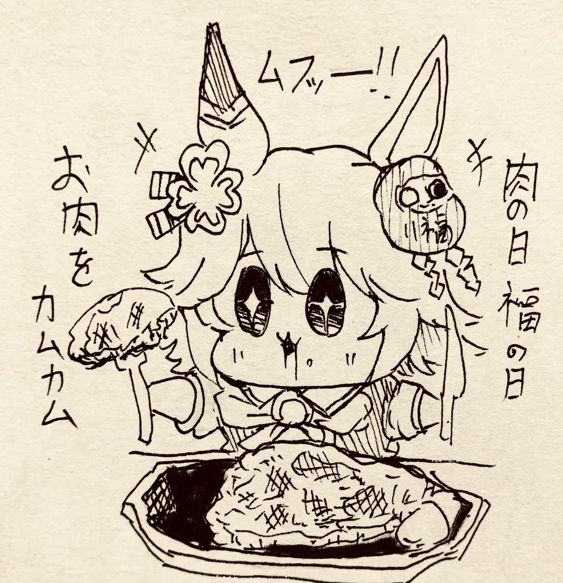 ステーキを食べるフクちゃん先輩