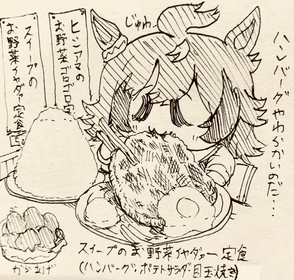 ハンバーグ食べておとなしくなってるウインディちゃん
