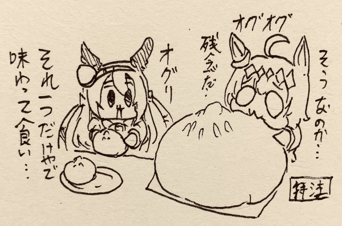 豚まん食べるタマモとオグリ