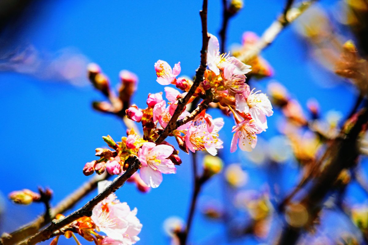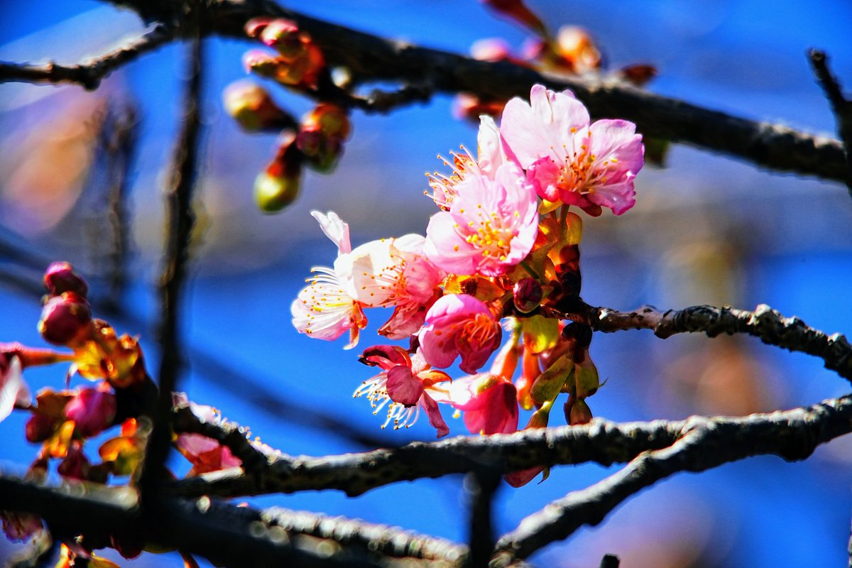 おらが町にも 桜がやってきた 河津桜🌸 ちょっとだけ 咲き初めました☺️