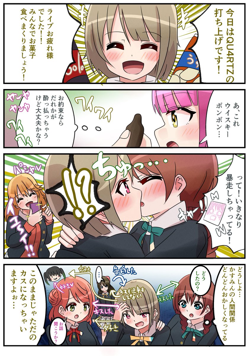 QU4RTZライブの打ち上げかすみんと何とも思ってないエマポム漫画
