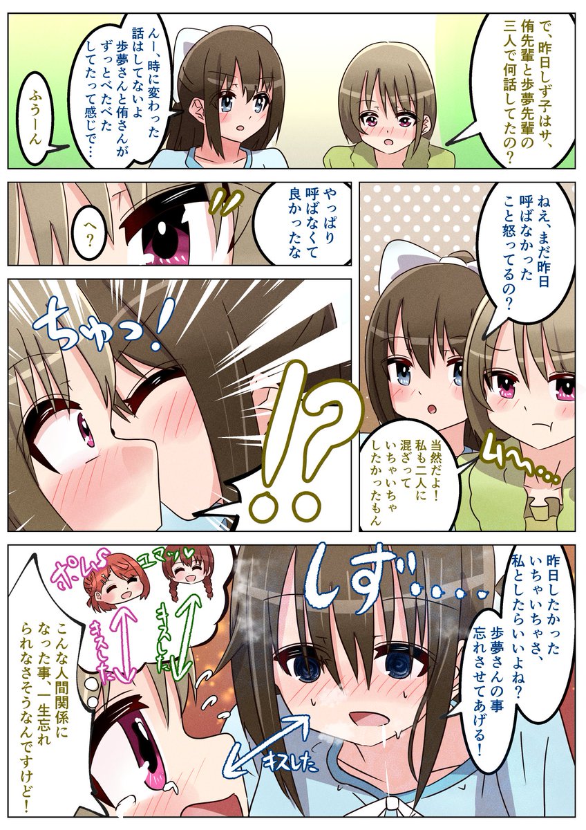 しずかすお泊り漫画② 「ポムの残り香に抵抗するしずくちゃんとドキドキかすみん」