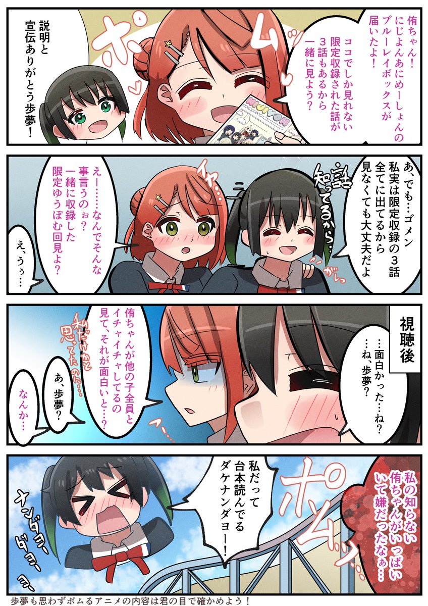 にじよんあにめの13話から15話を二人っきりで視聴するゆうぽむ漫画(極微ネタバレ含む)