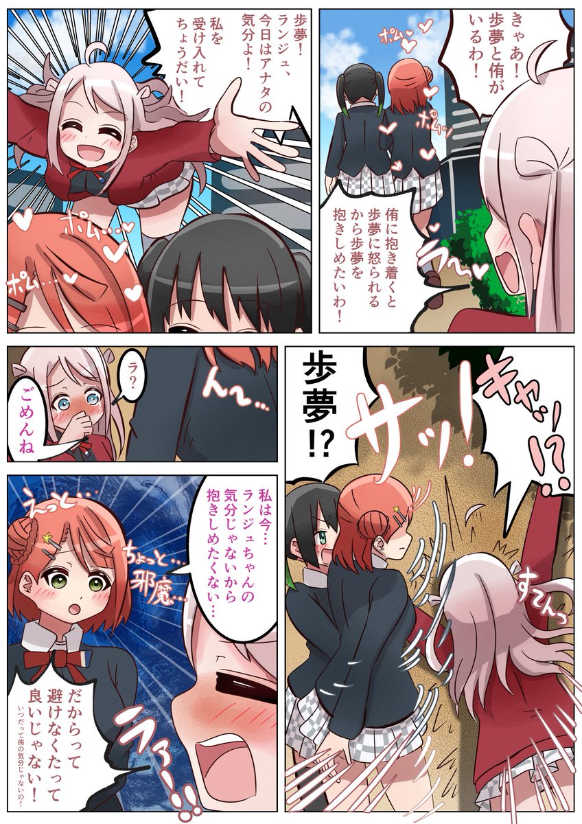 歩夢を抱きしめたくなったランジュとポム漫画