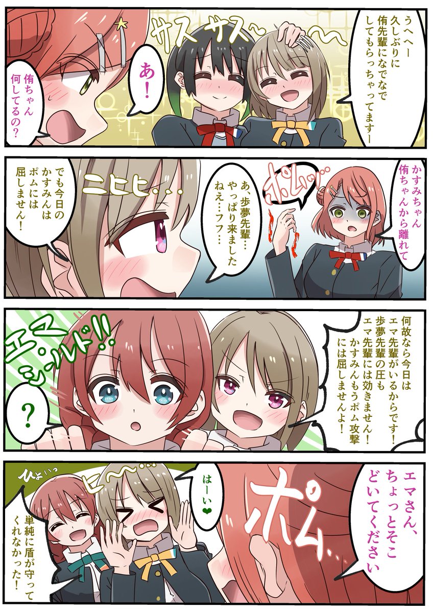 ポムを恐れず侑ちゃんになでなでしてもらう策士かすみんとポム漫画