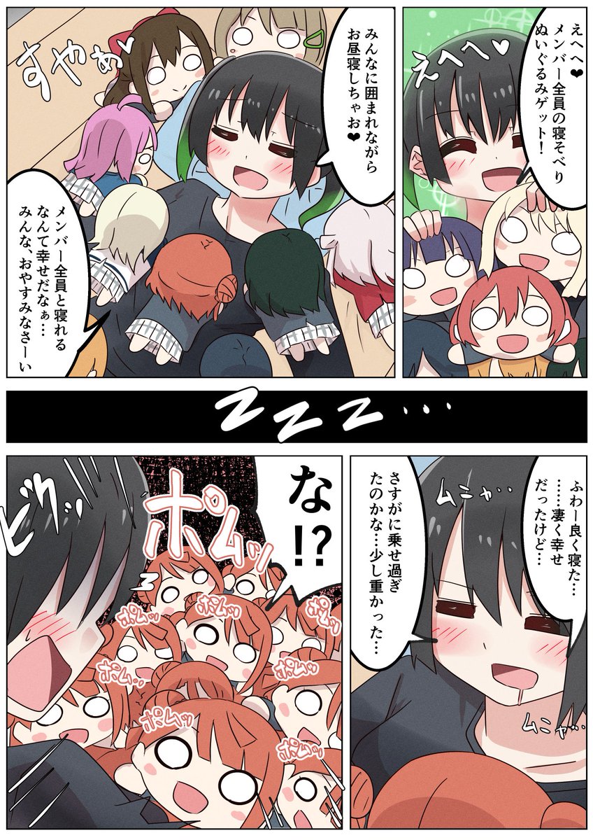 ニジガクメンバー全員分の寝そべりぬいぐるみを手に入れた侑ちゃんとポム漫画