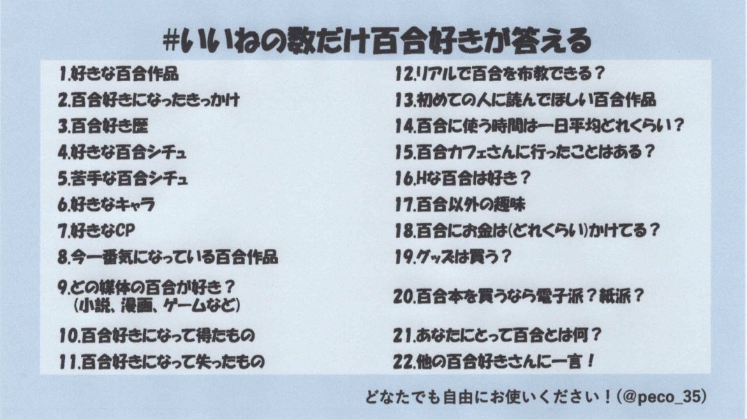 #いいねの数だけ百合好きが答える