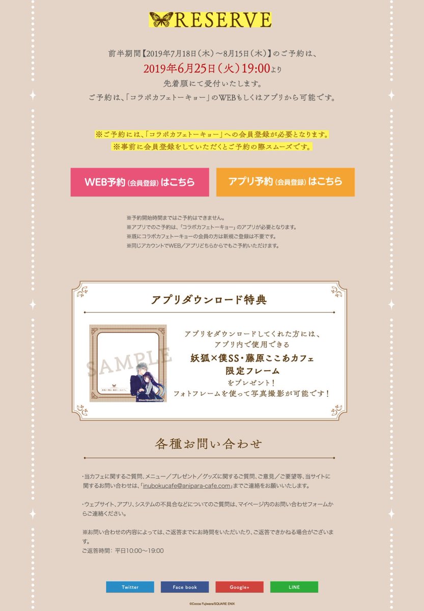 7月18日(木)よりオープンする妖狐×僕SS・藤原ここあカフェ 東京ですが、