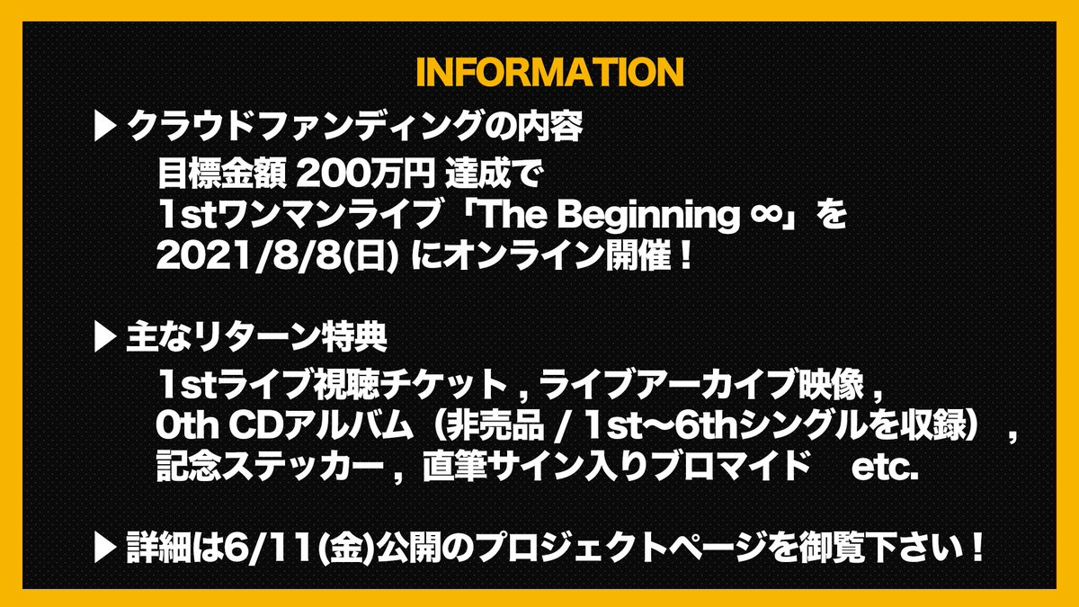 ライブ実現に向けたクラウドファンディングを6/11(金)21:00より開始致します!