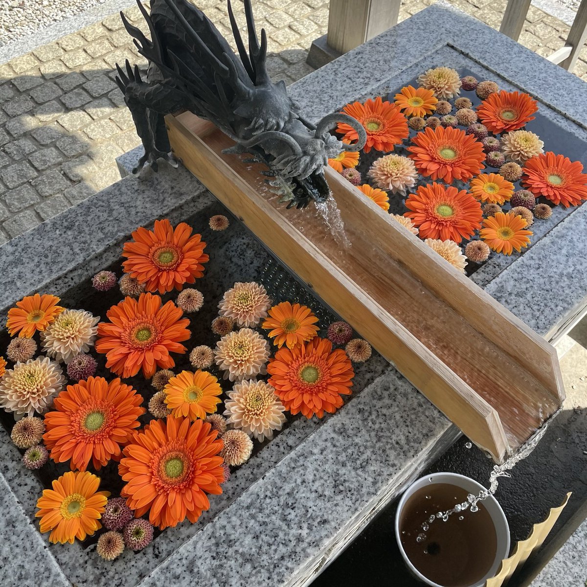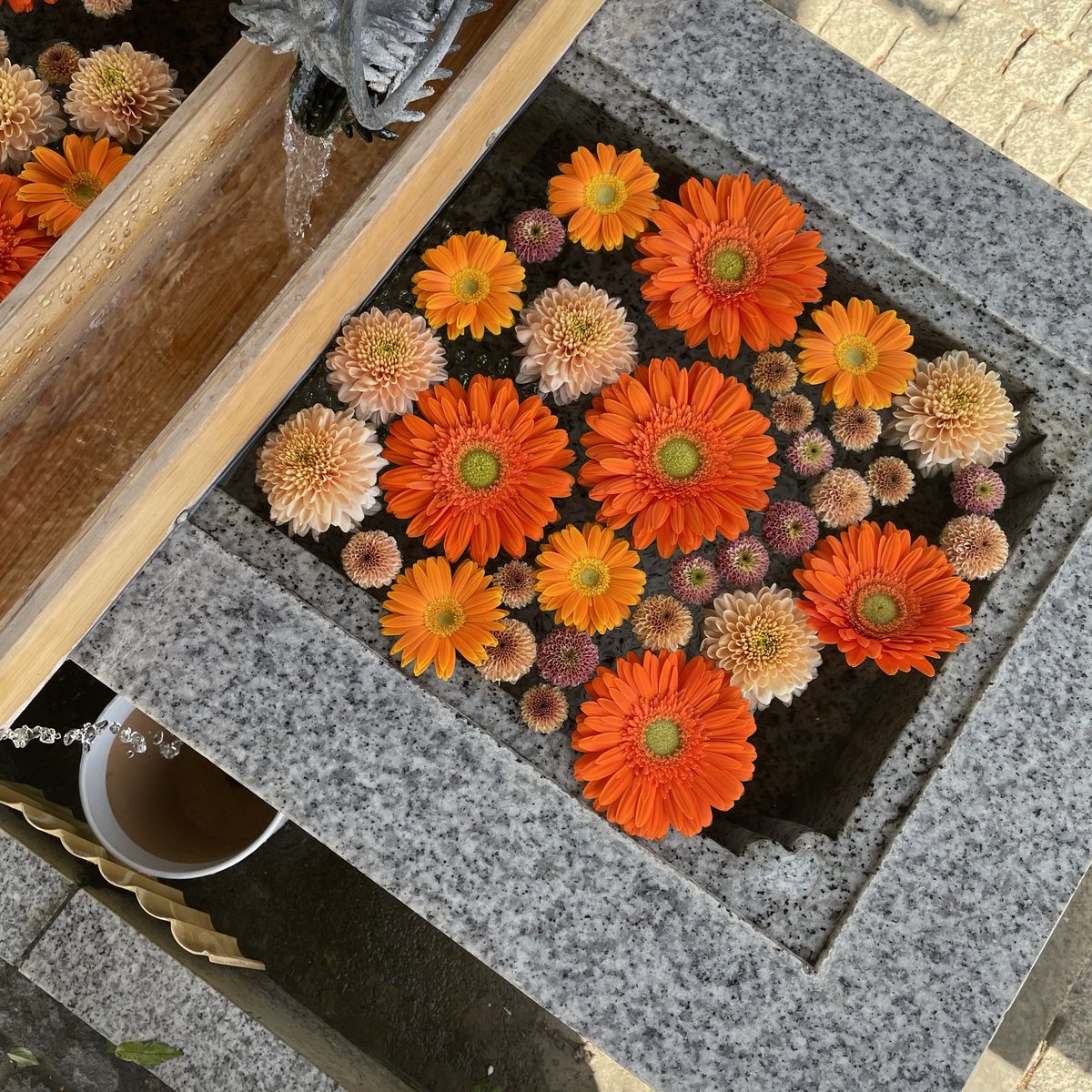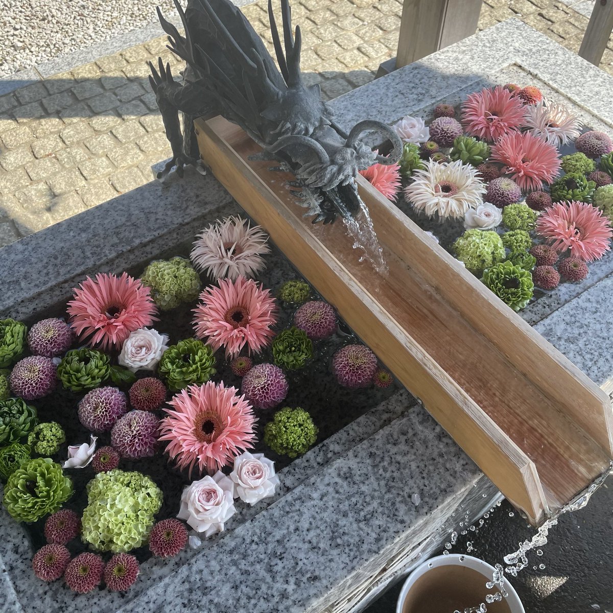 今週の花手水 *川越八幡宮神社 今月より毎週のお届けとなります。 どうぞお楽しみくださいませ。