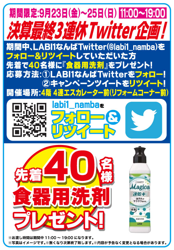 #LABI1なんば でフォロー&リツイートキャンペーン開催中🎉