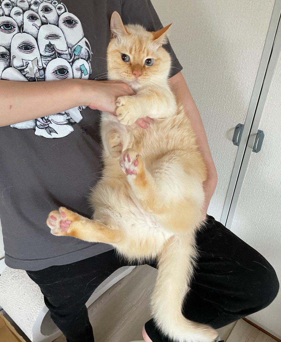 行かないでの攻防(ドアを閉めたい人間と閉めさせまいとする猫)