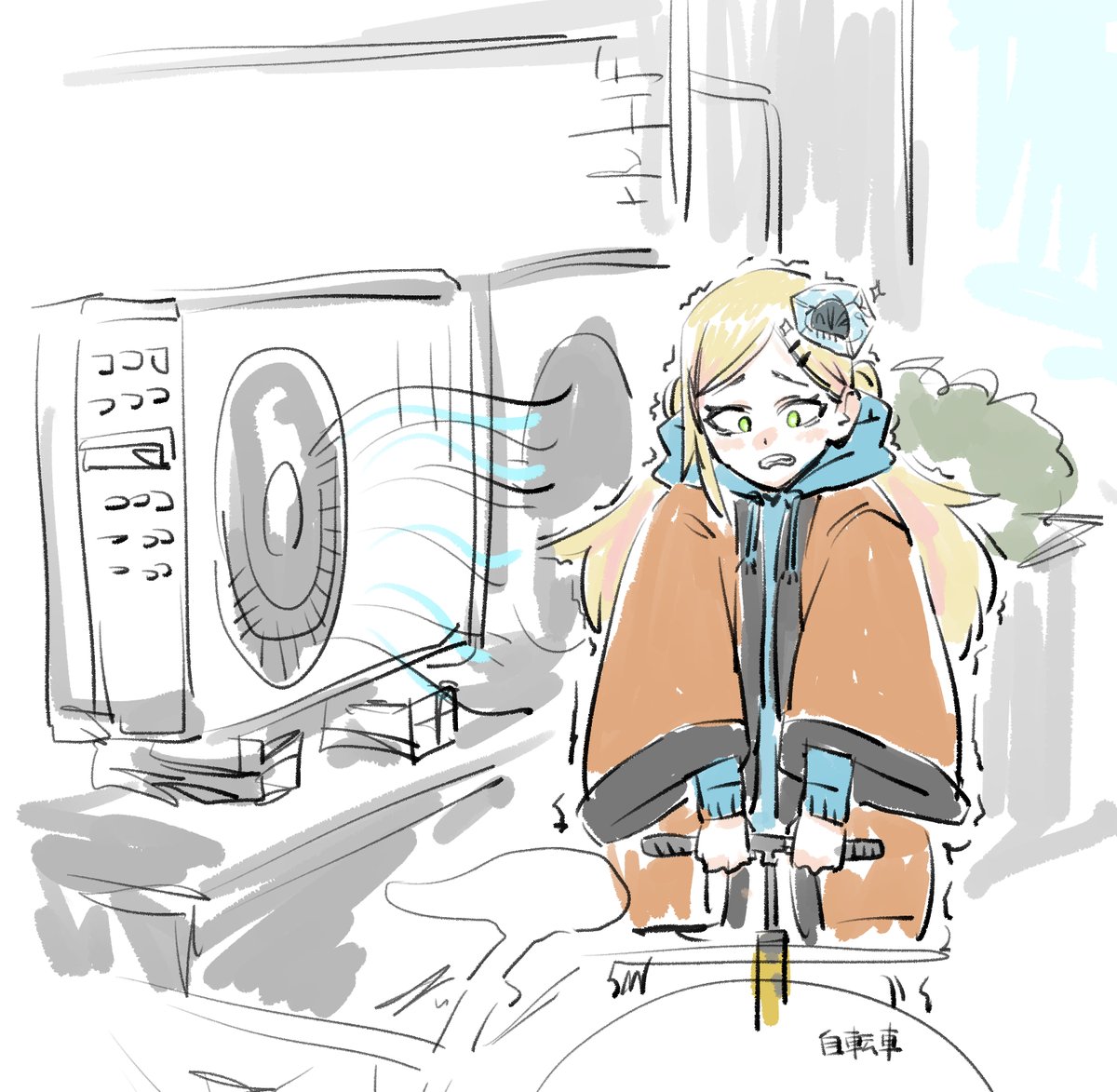 今朝は室外機の冷風に耐えながら自転車のタイヤに空気を入れました