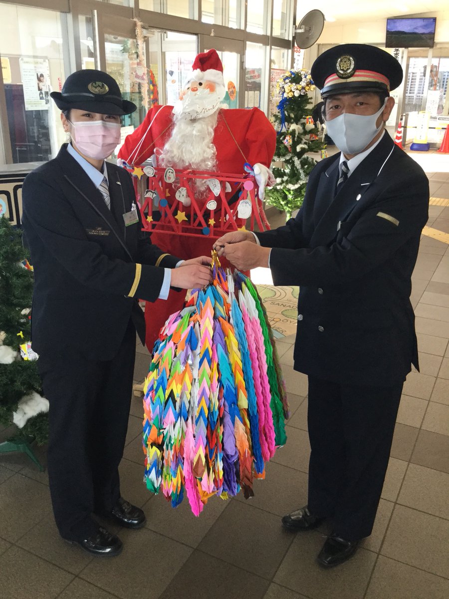 昨年台風19号の被害を受けた上田電鉄の千曲川橋梁。現在上田ー城下間の復旧工事が着々と進んでいます。別所線全線開通3月28日まであと96日!JR上田駅の社員もカウントダウンに参加しました。JR上田駅「復興祈念。折り鶴で応援」にもたくさんの鶴が集まっています✨
