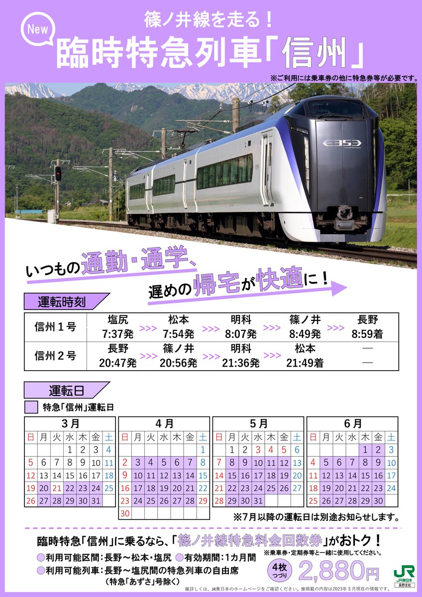 【特急「信州」で、快適な通勤・通学を✨】