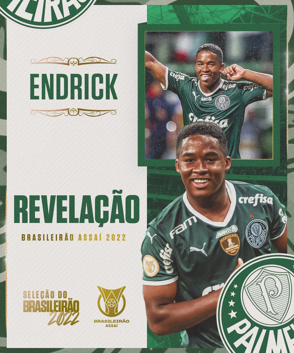 21 de julho de 2006. Nasceu Endrick Felipe Moreira de Sousa, que apenas 16 anos depois está aqui, eleito a revelação do campeonato. O menino encantou não só a torcida do @Palmeiras, como todo o país. Um futuro promissor à frente e o carinho de todos nós! Voa, @endrickii!