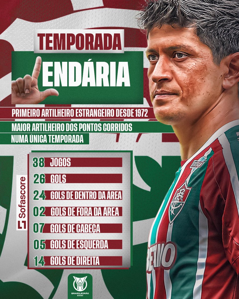 Vinte e cinco vezes Germán Cano. Artilheiro do @FluminenseFC, artilheiro do @Brasileirao, artilheiro do mundo! Que temporada inesquecível!