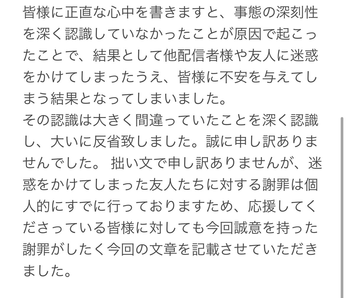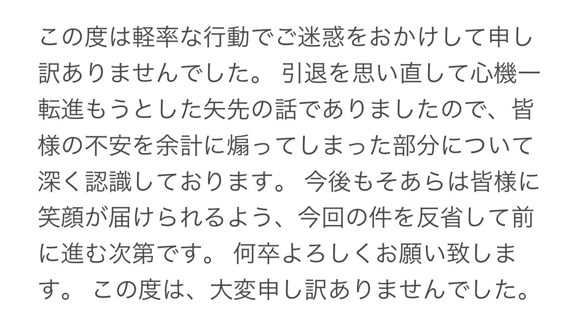 後日改めて謝罪ツイートの方させて頂きます。