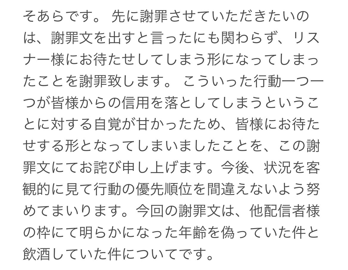 年齢について、3年半自分の年齢を一歳偽って活動してたこと、ほんとうに申し訳ございませんでした