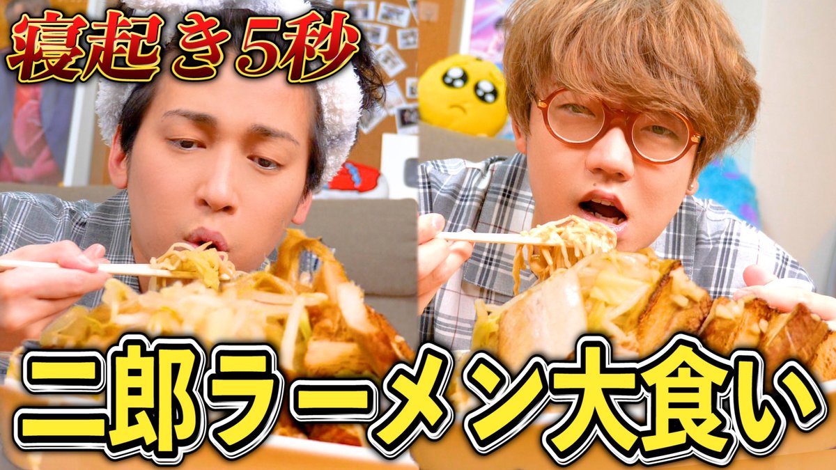 【爆食】寝起き5秒で二郎ラーメン早食い対決したらヤバすぎたwwwww